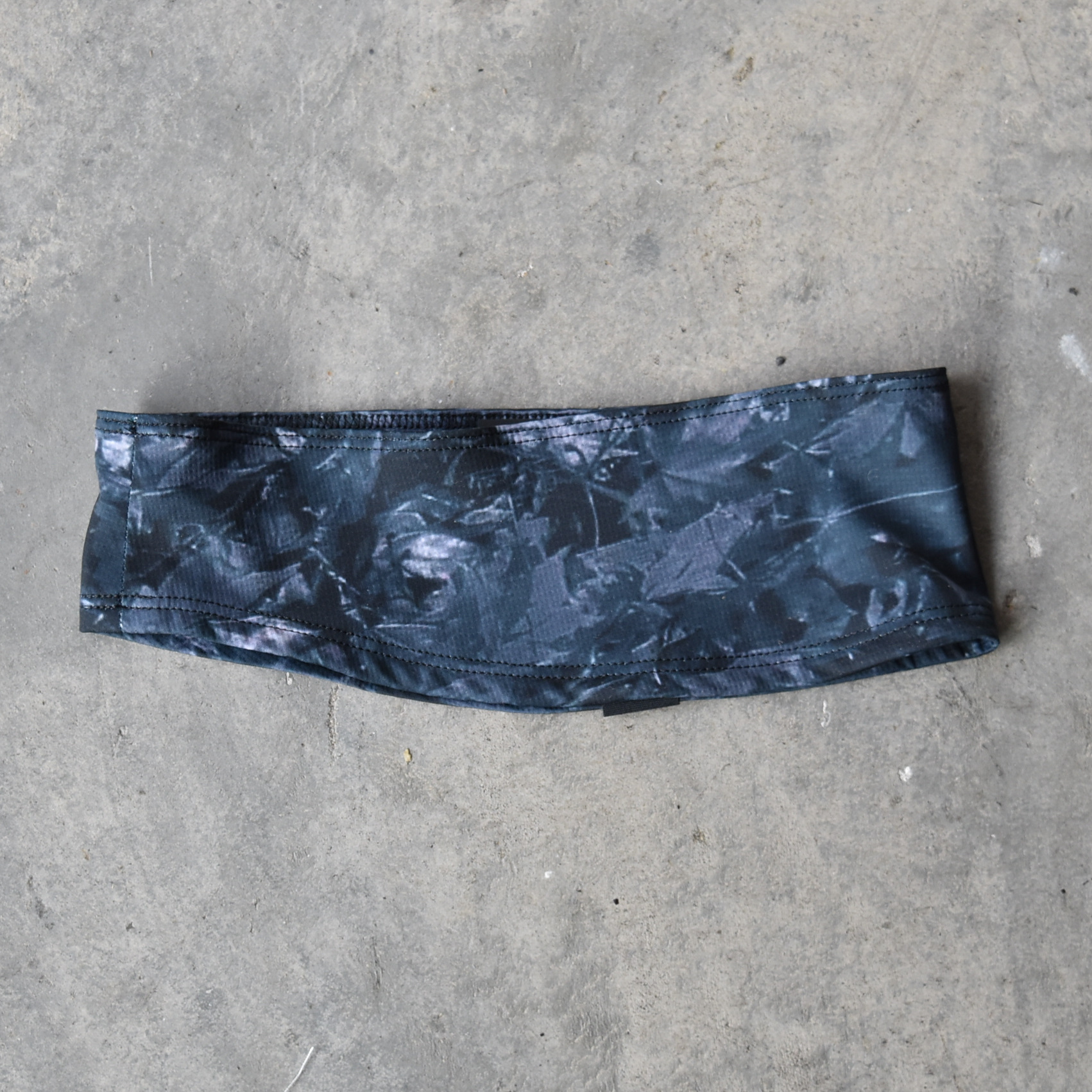 【circle AOMORI LIMITED】 DEADLEAF柄を大胆に昇華転写プリントしたヘッドバンド。 東レのPrimeflexをメインファブリックに採用。ソフトな肌触りと耐久性に優れた高機能素材です。 ブランドを象徴とするDEADLEAF柄でその他同柄のアイテムと合わせて頂きたいアイテム。