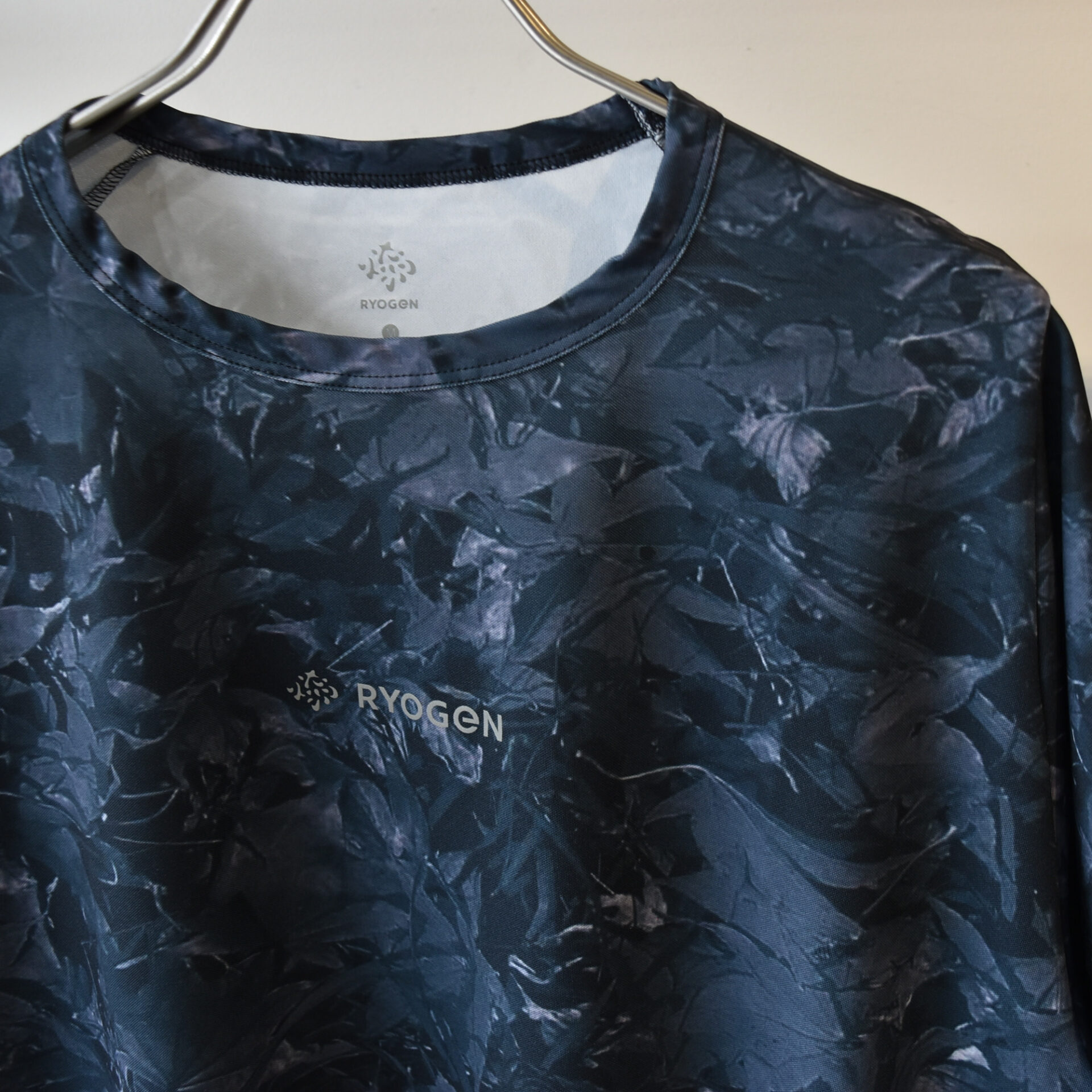 シンプルでありながら、RYOGENらしさが詰まったハーフスリーブTシャツ。 COOLMAX®EcoModeを使用した吸水速乾素材に、当店別注でDEADLEAF柄を昇華プリント。 前見頃セットイン、後ろ見頃ラグランにすることにより肩甲骨周りの腕振りが容易。 裾スリット仕様により、風に靡く様がなんとも美しくRYOGEN定番のディテールとなっている。