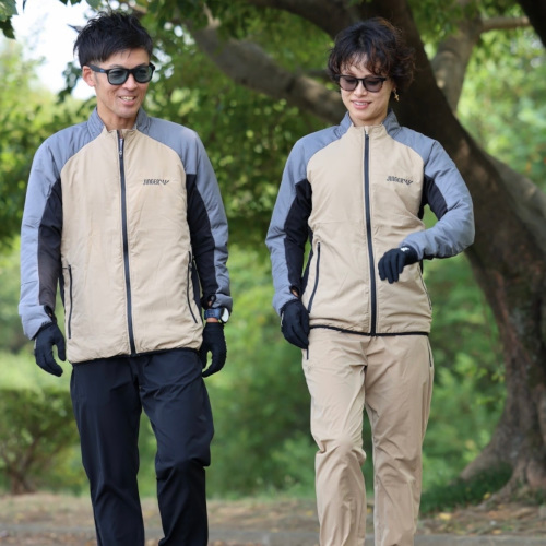 薄い中綿入りのランニングジャケットで、体温調節がしやすいのが特徴です。