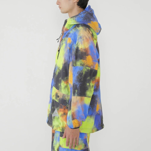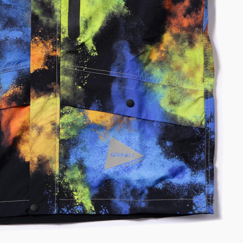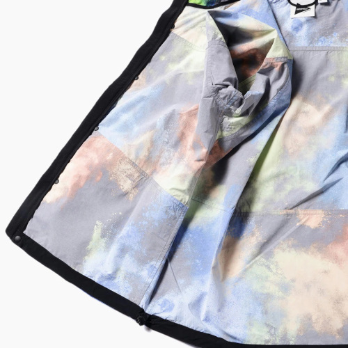 軽量で高密度のナイロン素材は、表面に微起毛をしているため柔らかな風合いが特徴です。 撥水加工を施しています。 胸ポケットのファスナー口は圧着仕様です。 部分的にリフレクターステッチを使用して、夜間での視認性があります。
