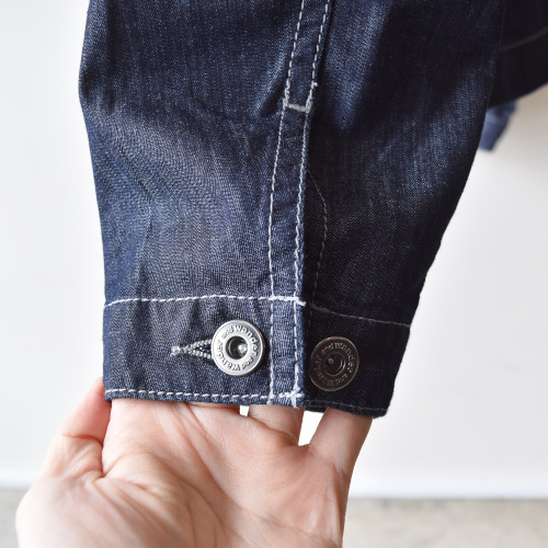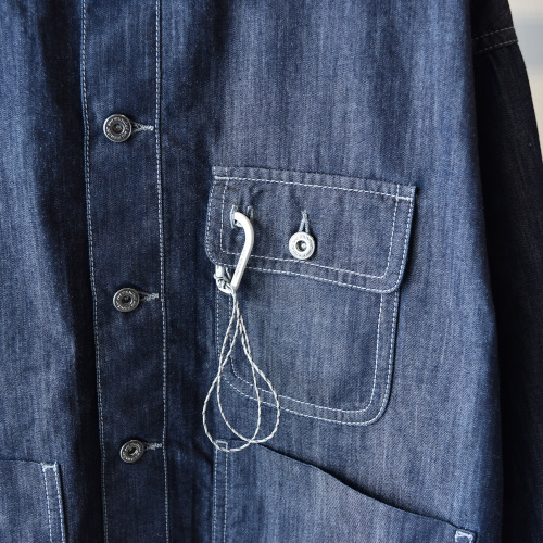 速乾機能を持つCOOLMAXドライデニムを使用したシャツジャケット。 ワイドシルエットで着丈は短めのデザイン。 袖に一部リフレクターステッチを施し夜間の視認性も確保。