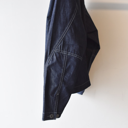 COOLMAXの糸を使用した吸水速乾性のあるオリジナルストレッチデニムの一重のライトなムードのジャケットです。