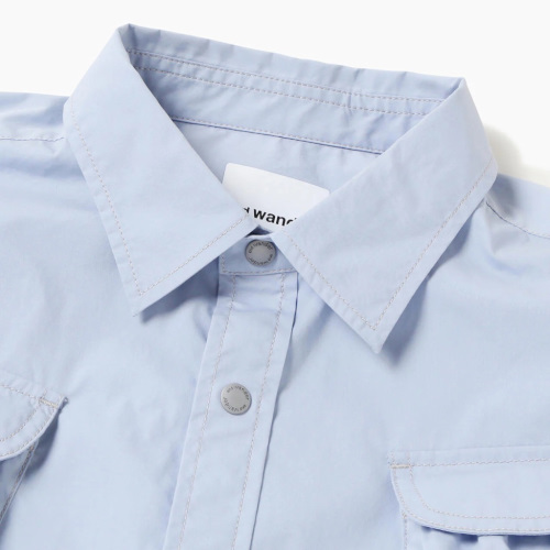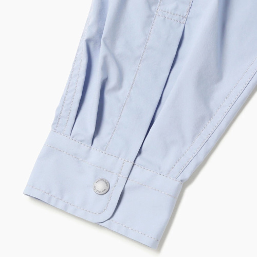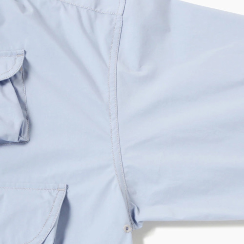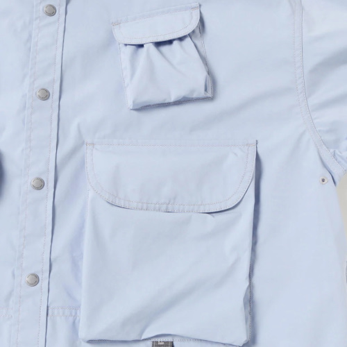 ストレッチ性のあるタイプライター素材は吸水速乾性があります。 マルチユースなポケットが前身頃に付いたシャツです。