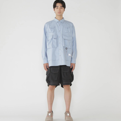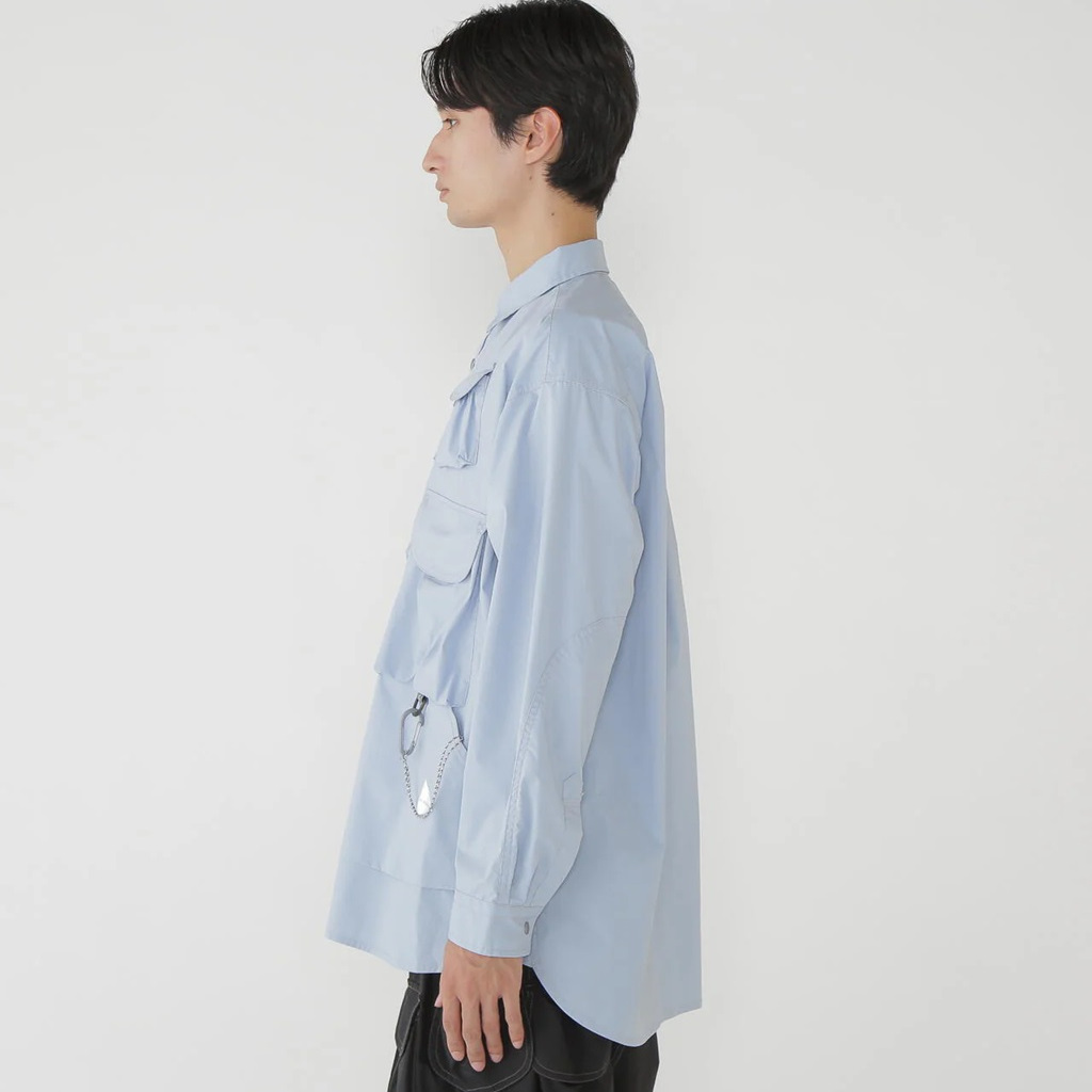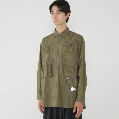 マルチユースなポケットが前身頃に付いたシャツです。