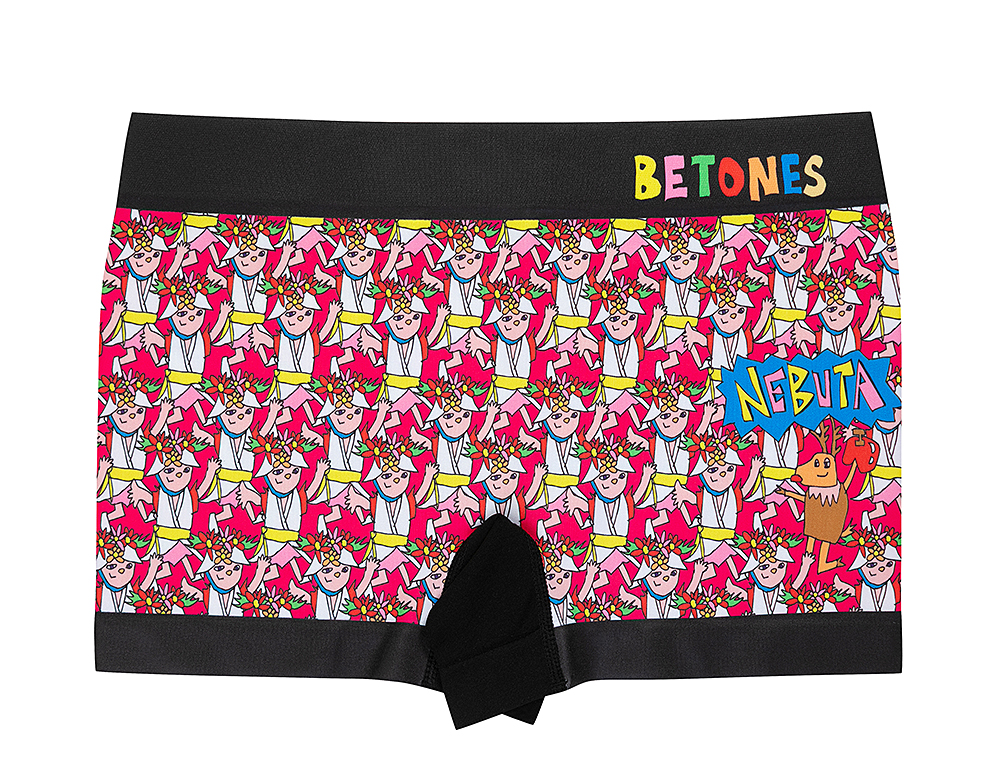 日本のアンダーウエアブランドBETONESに別注でボクサーパンツを作っていただきました。 グラフィックデザインはSwimmyDesignLab代表の吉水卓さんに描いていただいたねぶた祭り。 速乾・ストレッチ素材で、ストレスフリーな穿き心地。 アクティビティの際のアンダーウエアとしても使用していただけます。