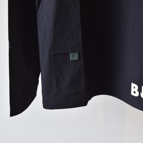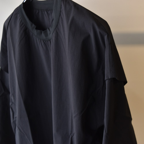 ナイロン本来の優れた機能性を活かしつつ、スポーティになりすぎない、天然素材のような上品な表情を併せ持つ高機能素材を使用したプルタイプのレイヤーシャツ。オーバーレイヤーとして着用時により使い易くなる様に丈を長く設計しています。