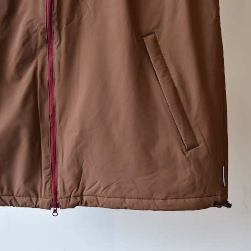 フロントのファスナーにはダブルジップを採用し、アクティビティ時の体温上昇時にベンチレーションの役割を果たす機能的な仕様です。