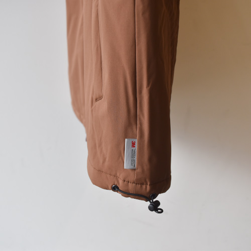中材の高機能中綿素材「3M™ シンサレート™ 」は、微細な繊維構造により優れた断熱性を実現しながらも見た目に薄く、体の熱を外に逃がさずに湿気を通すという特性を持っています。