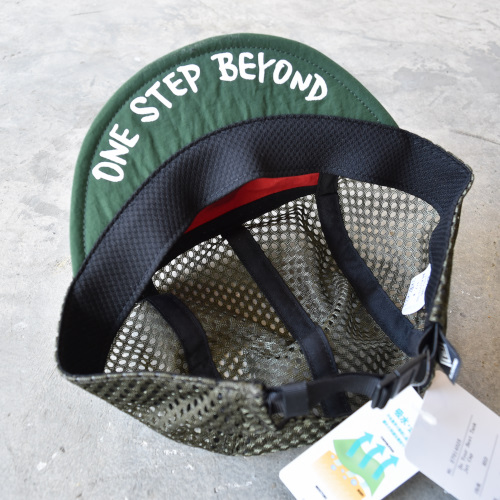 ブリム裏にも「One Step Beyond」のワードを手書き風のプリント配し、ツバを跳ね上げて被った際のアクセントになるように仕上げました。