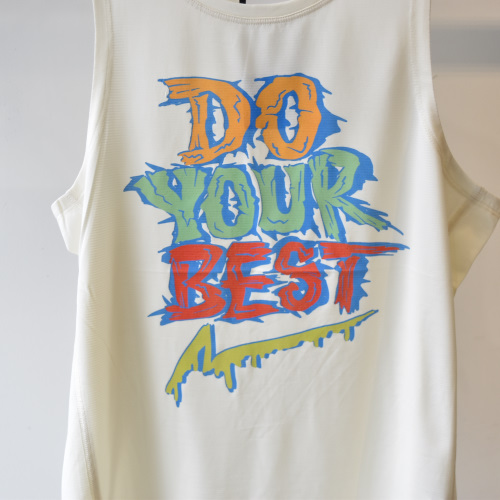 フロントにランナーを鼓舞するワードを落とし込んだグラフィックをプリントしたランニングシャツです。
