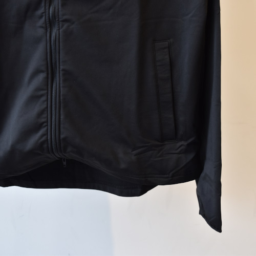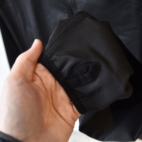 ジップを上まで絞めると口元まで覆う事ができ、袖先にはサムホール付きで手の甲までをカバーできる仕様で、冬場のトレーニングに冷気から体を守ります。