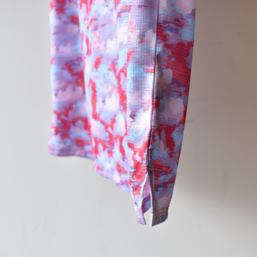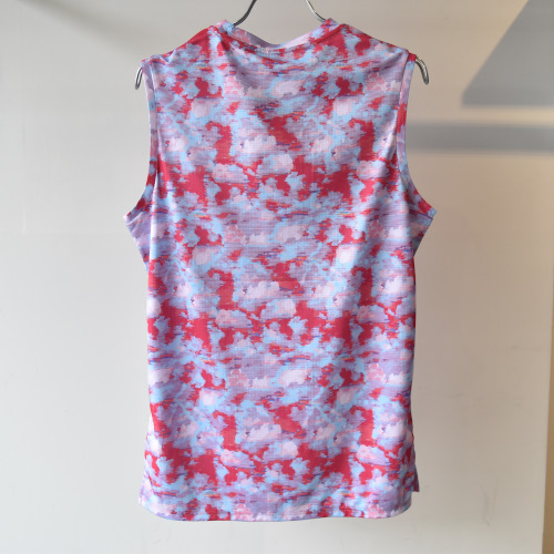 スポーツウェアで多用される昇華転写プリントによるデザインの可能性を最大限に活かすべく、緻密で色鮮やかなグラフィックを表現したオリジナルテキスタイルを使用したノースリーブのランニングシャツです。