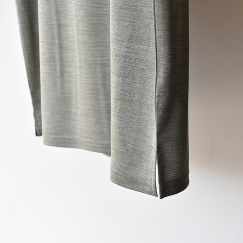こちらのシャツには光沢が抑えられた表情で、吸水速乾性とUVカット効果を併せ持ち、汗離れの良いクイックドライのファブリックを採用しました。