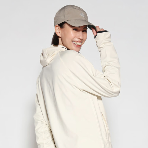 着用した際に頭の丸みに沿うようにフロントのロゴ刺繍部分以外のクラウンのパーツをを6パネルで組み立て、美しいフォルムとスタイリッシュなデザインを両立させたランニングキャップ。