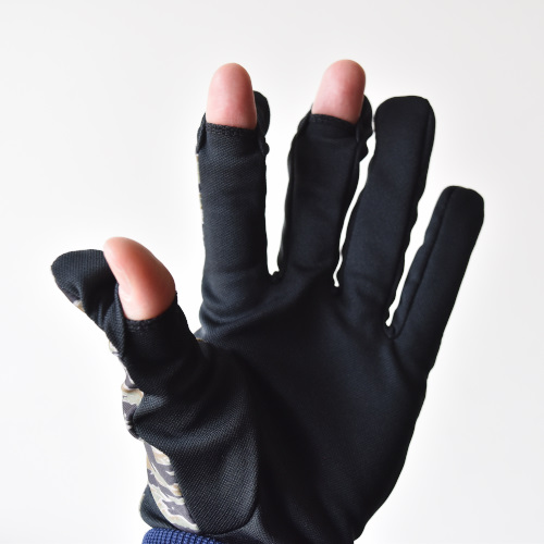 行動時に主要となる親指・人差し指・中指の三指の指先にスリットを入れ、ランニング時のジェルや行動食の補給が容易に可能。