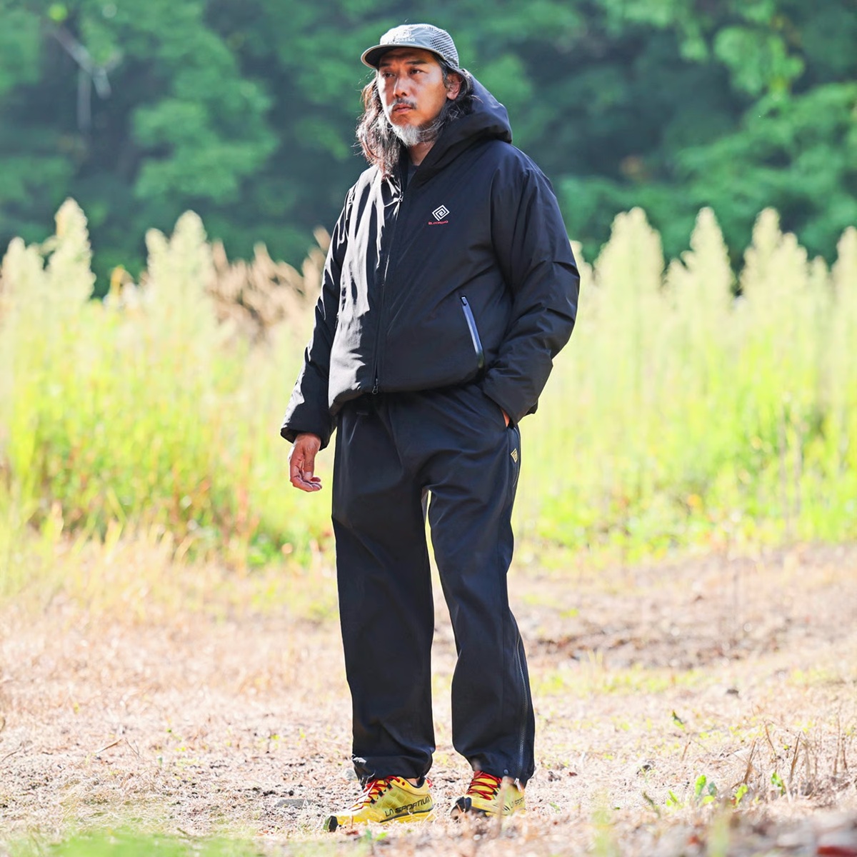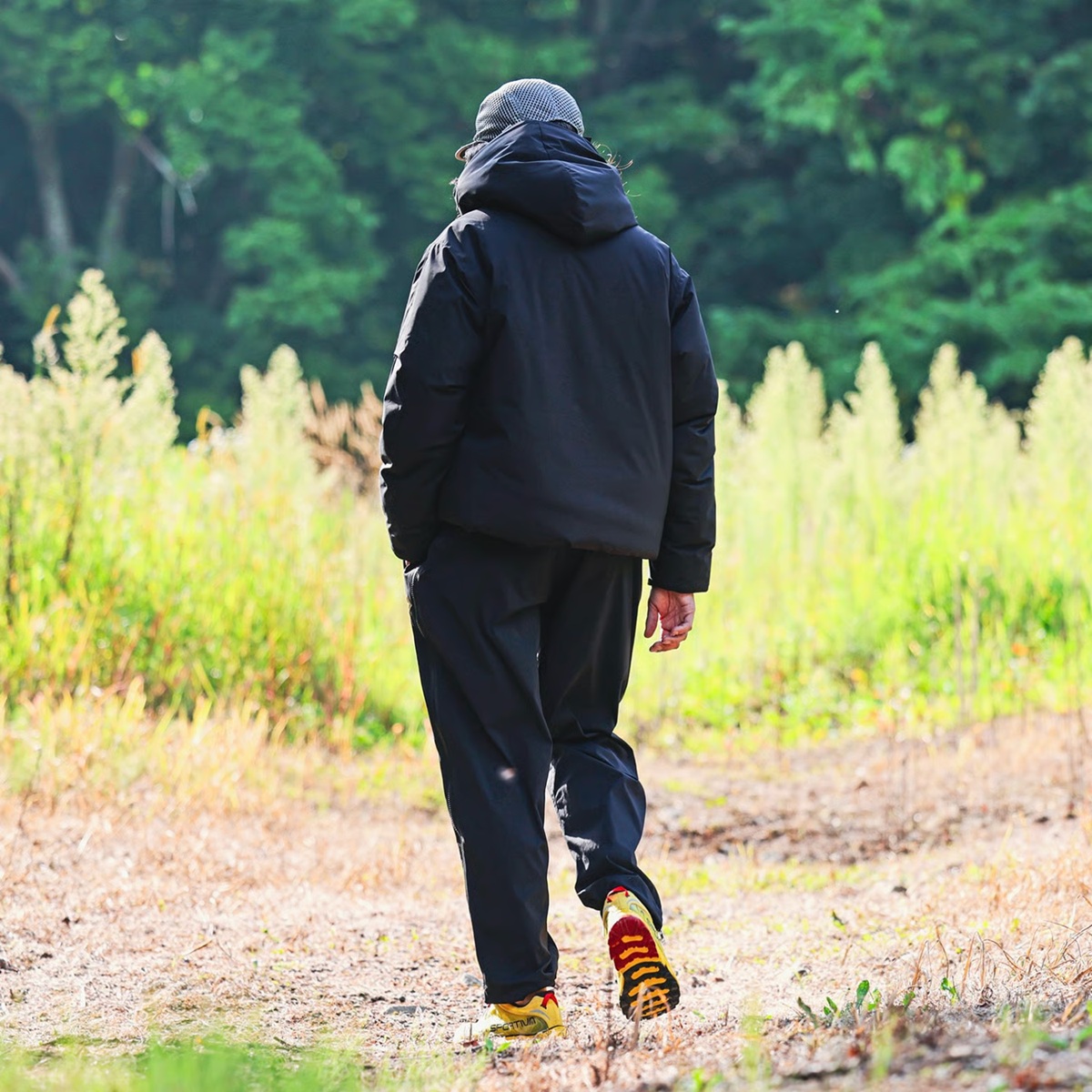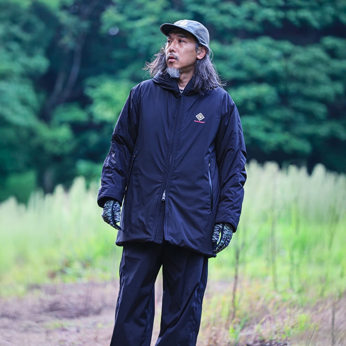 寒冷時のレースやトレーニング前後、ウォーミングアップ時などに、ウェアの上からざっくりと羽織れる、ミリタリーアイテムから着想を得たリラックスフィットの中綿入りジャケットの新作。