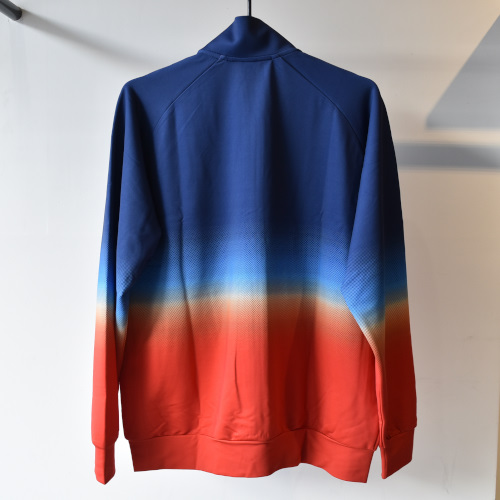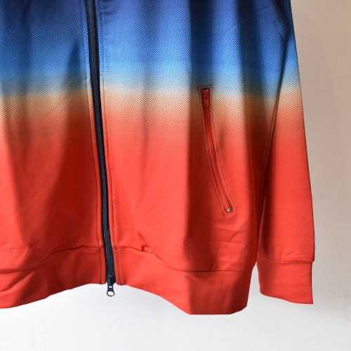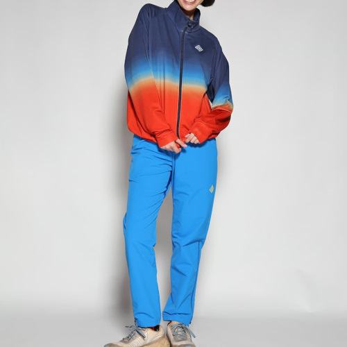 鮮やかな色あいのグラデーションカラーが美しい、ダブルジップを搭載したトラックスーツです。