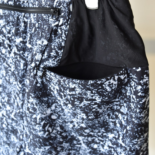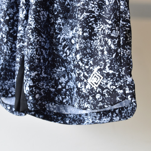 この高機能ファブリックに適したプリント方法のテストを幾度も重ね、素材に最も適し、生地の特製を損なわない昇華転写プリントで他色使いの柄を表現。