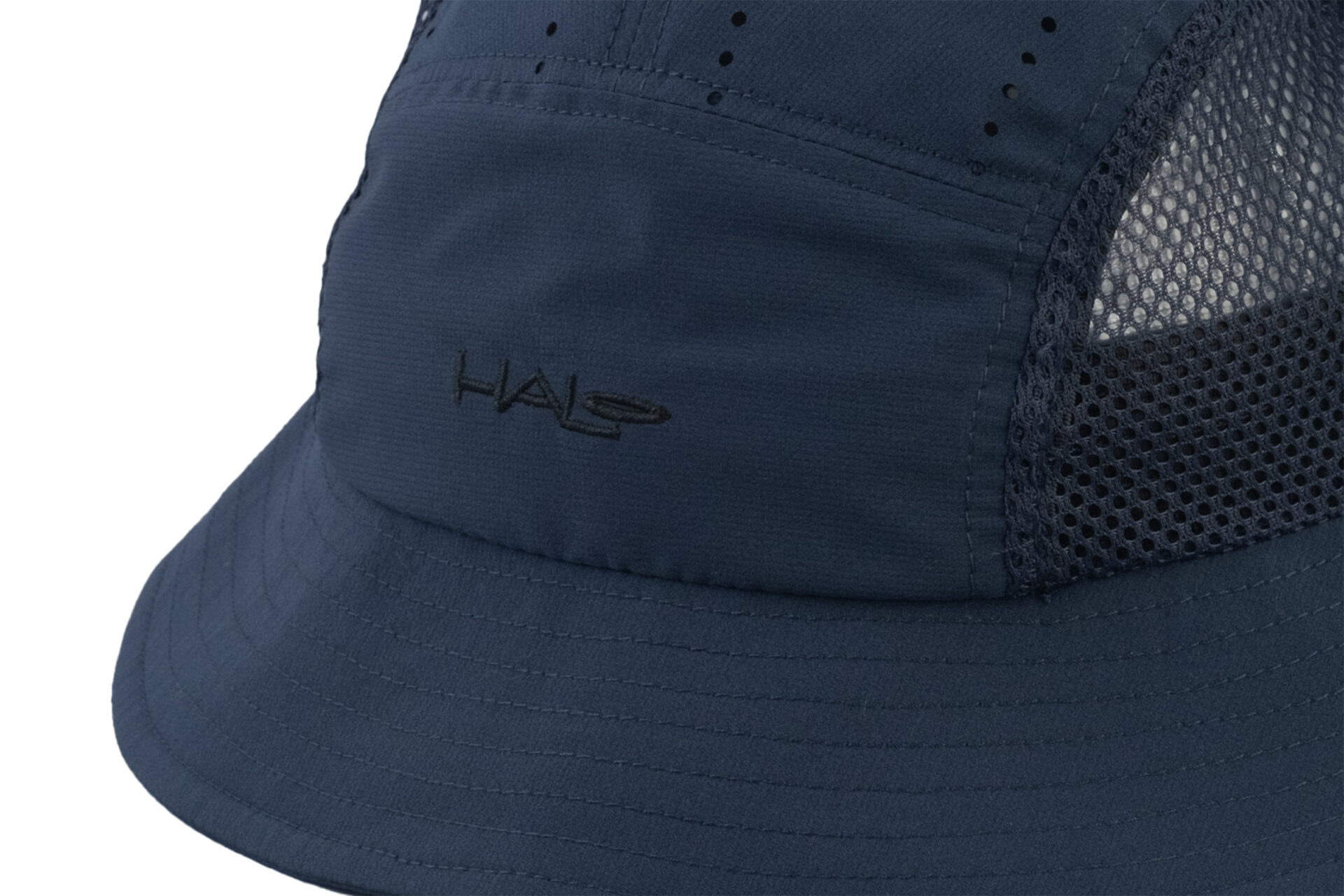 「HALO hat2」はシンプルなデザインで、サイドにメッシュ生地を採用し、トップパネルにはパンチング加工を施しています。これにより、ハット本来の日除け機能と通気性を両立させました。