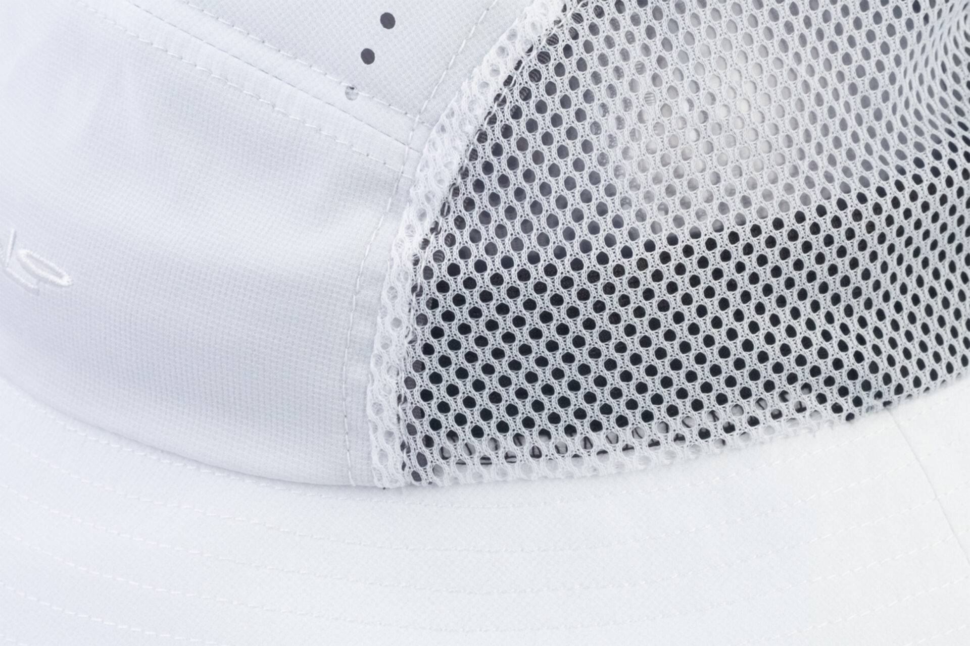 「HALO hat2」はシンプルなデザインで、サイドにメッシュ生地を採用し、トップパネルにはパンチング加工を施しています。これにより、ハット本来の日除け機能と通気性を両立させました。