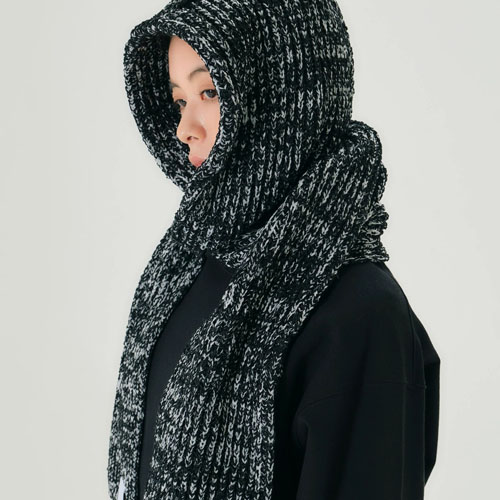 &MOSS (アンドモス) RIB KNIT HOODED MUFFLER(MU001-422) BLACK