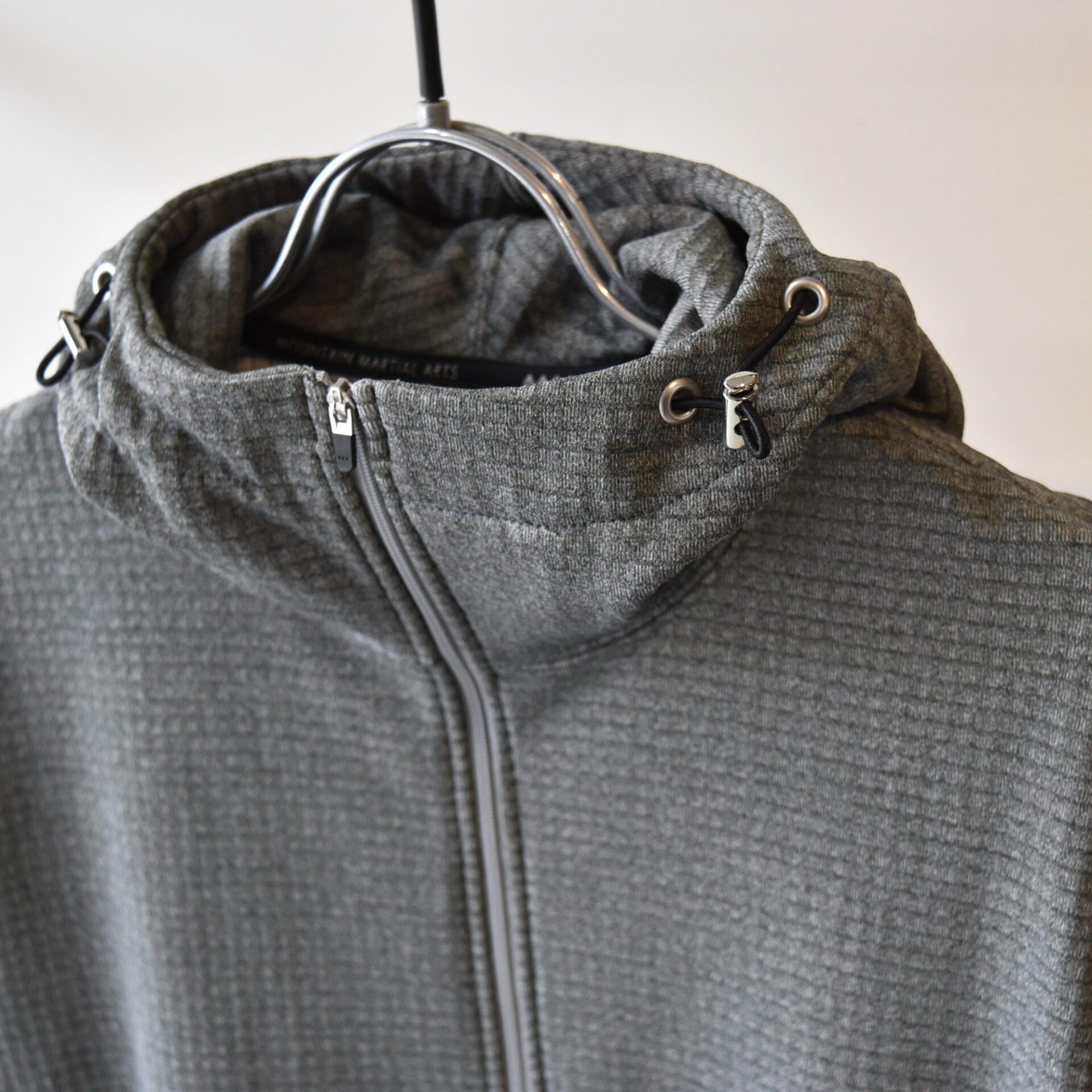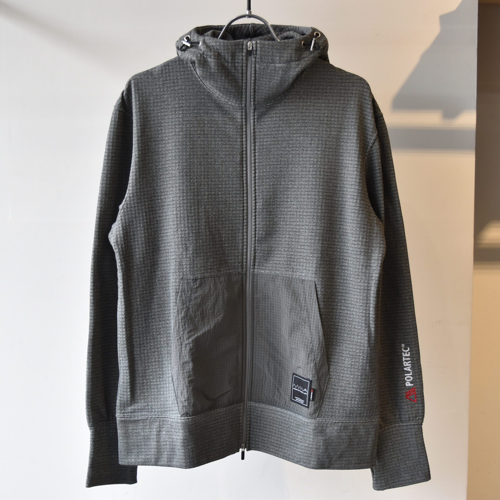 寒い時期のロード&トレイルランニング、ハイクと幅広いシーンで高い機能を発揮する高機能素材「POLARTEC® Power Grid」を使用したフロント全開+両脇ベンチレーション装備のフーディー。
