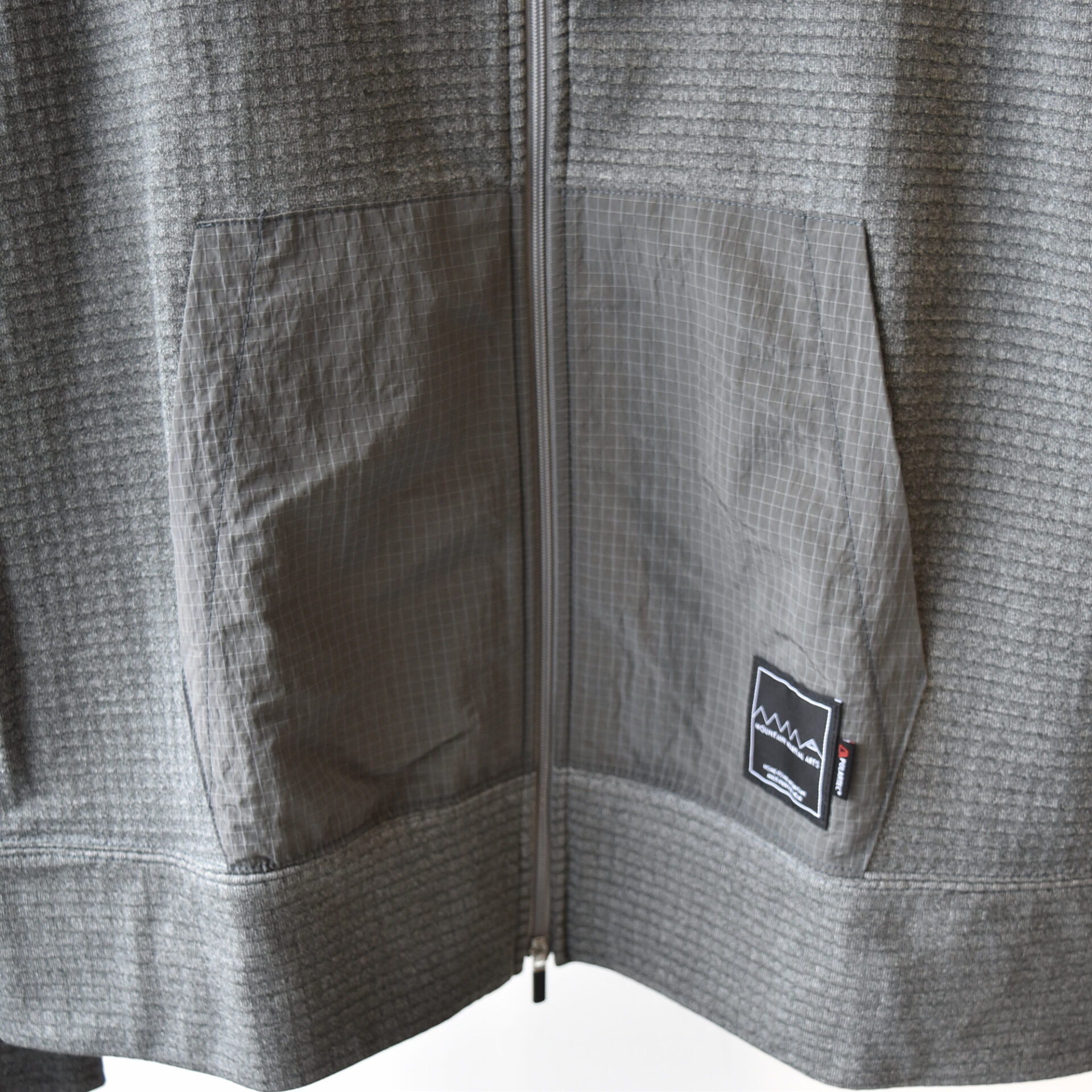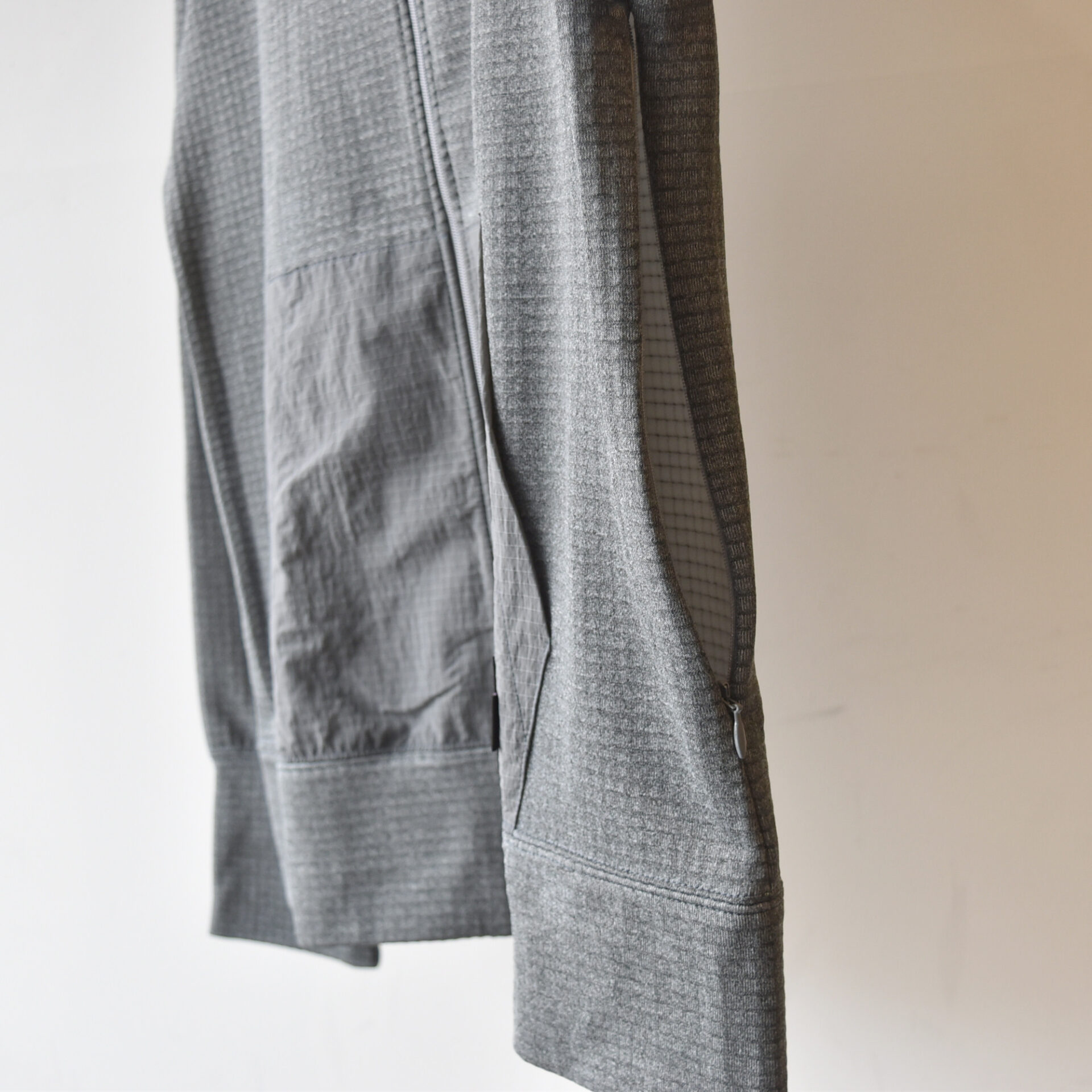 グリッド状の素材感が特徴的な特許取得済みの二重構造のテクニカルフリース。