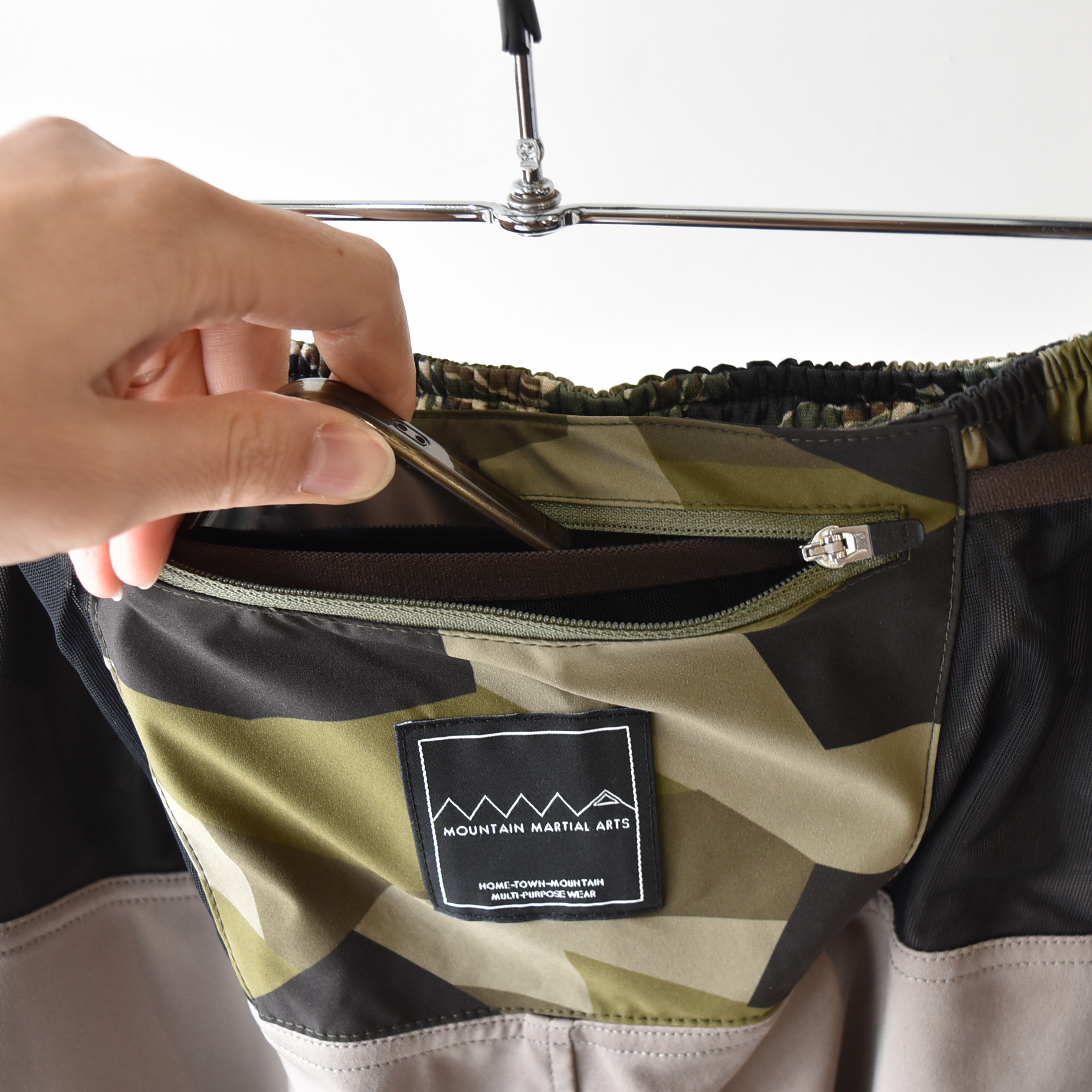 脚部左右のカーゴポケットはマチをなくし、高い位置に配置することでランニング時の揺れを軽減。