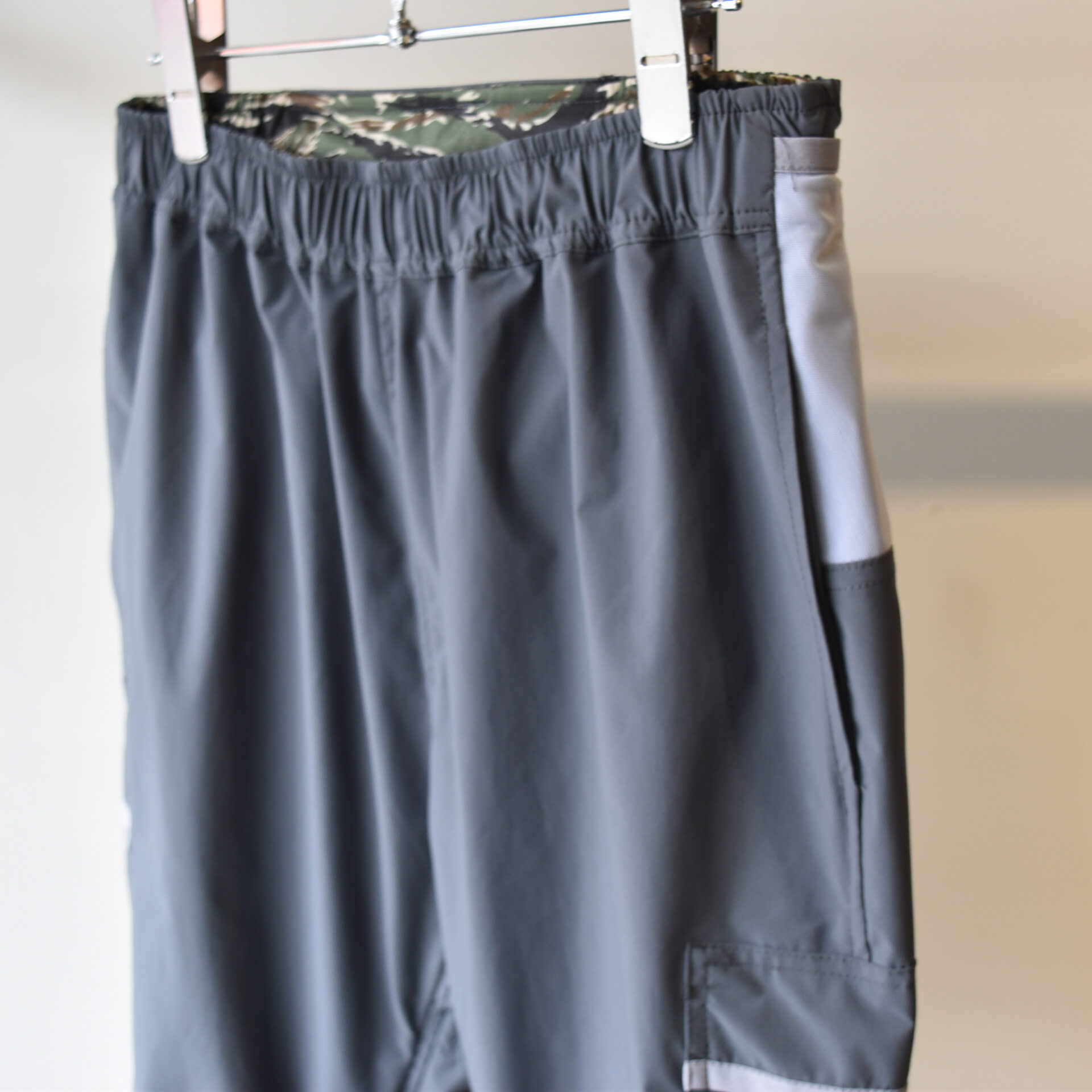 カーゴショーツをモチーフとした 7 つのポケットを備えた収納力抜群のロングレングスランニングパンツ。