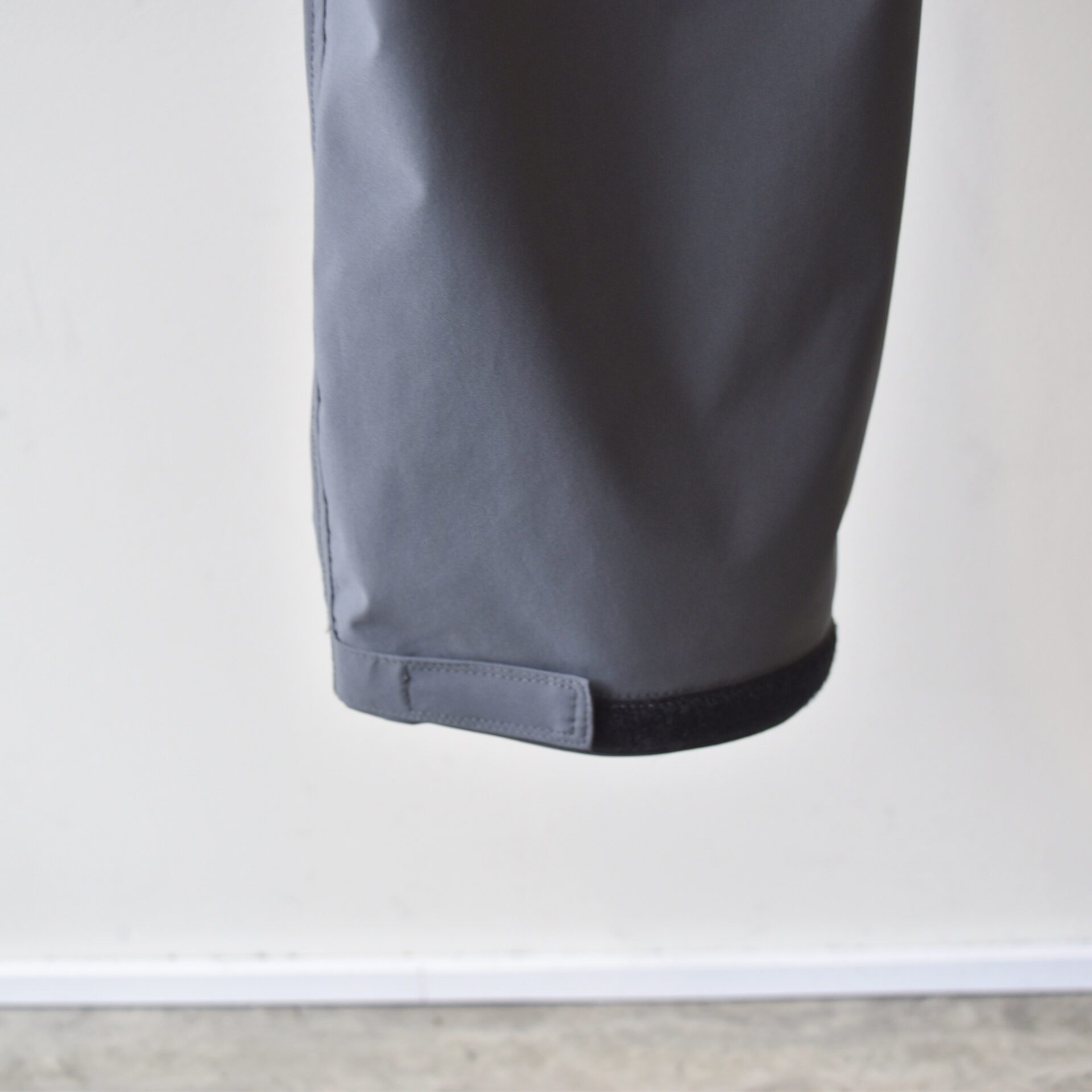 ヒップに余裕を持たせ、裾に向かいテーパードするシルエットで、立体的な膝のパターンや 180 度開脚可能な股部分のガゼットなど、動きやすさと履いた際のシルエットを両立しました。
