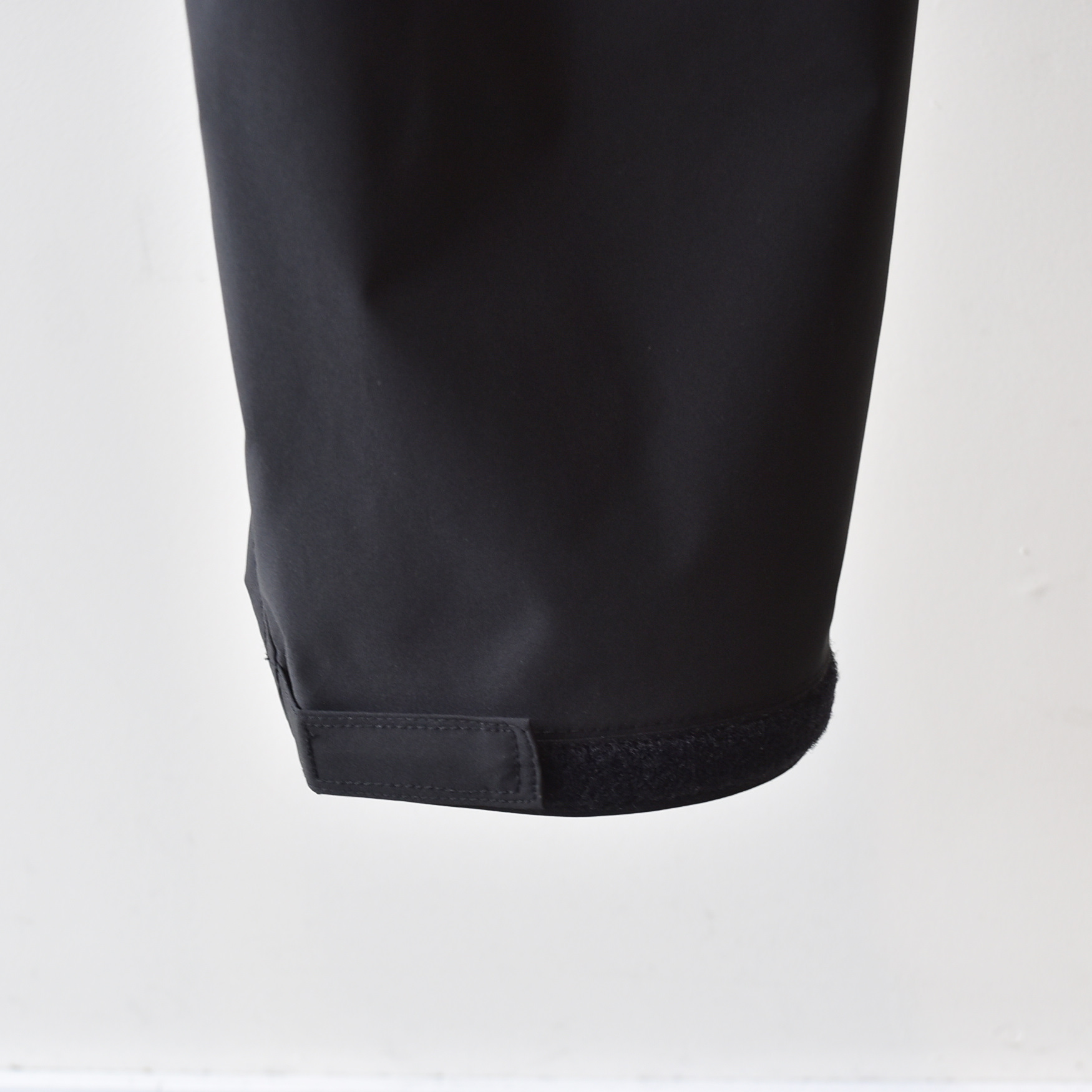 ヒップに余裕を持たせ、裾に向かいテーパードするシルエットで、立体的な膝のパターンや 180 度開脚可能な股部分のガゼットなど、動きやすさと履いた際のシルエットを両立しました。