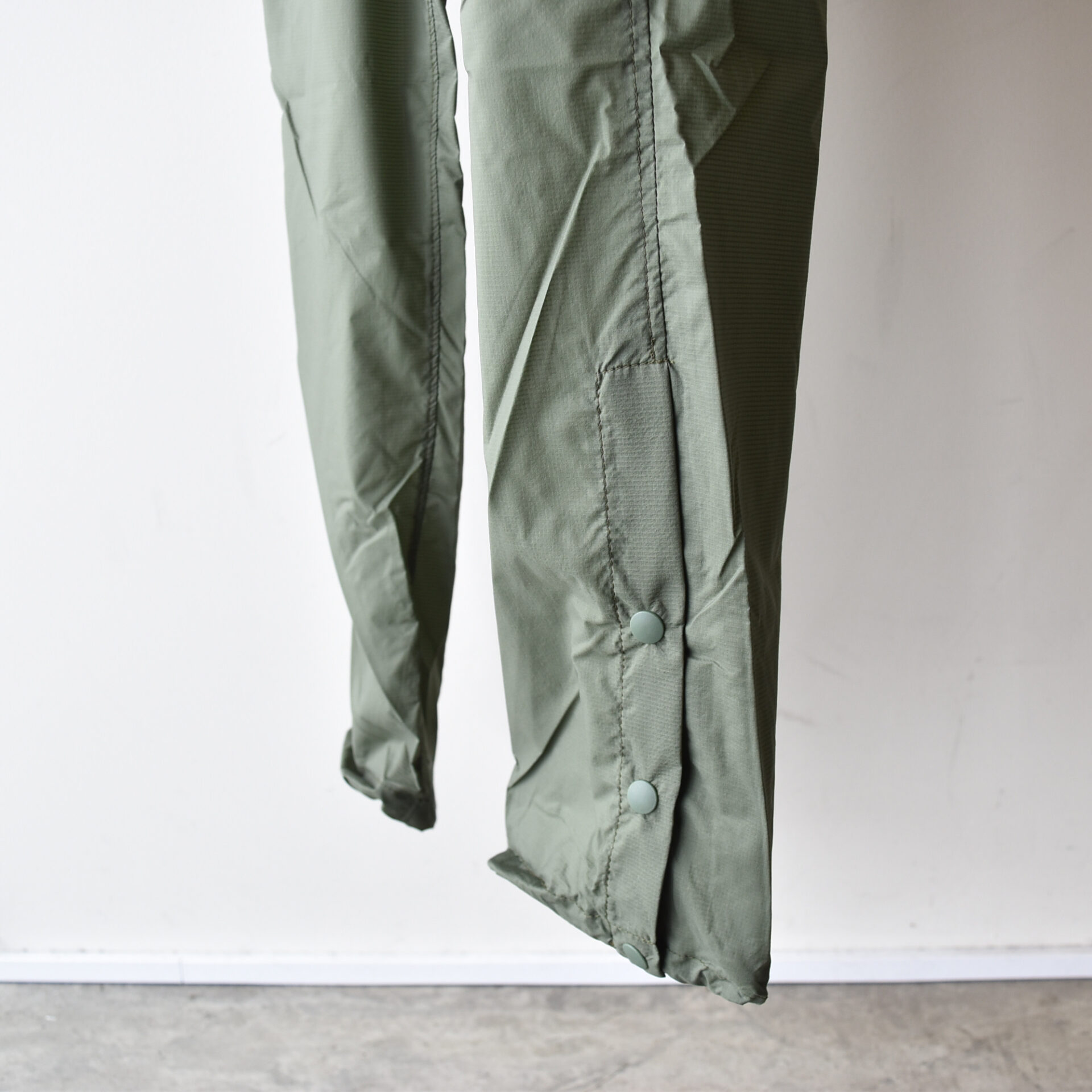 裾はドットボタンで開閉し、シューズを履いたままでも着用可能。