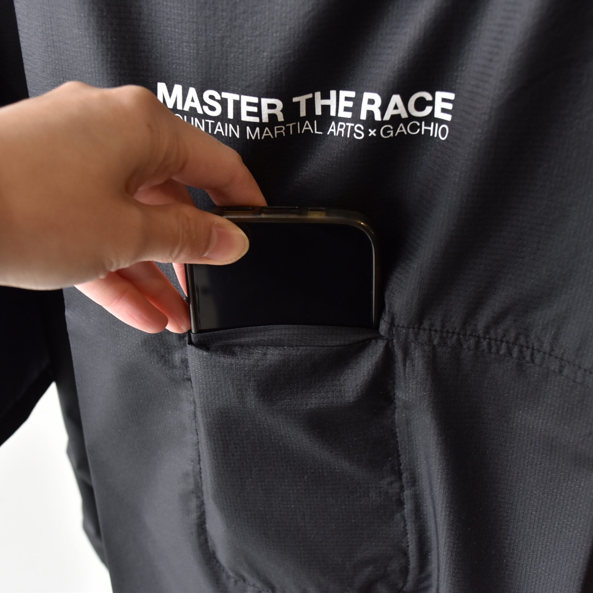 日本製のオリジナルボディは、スマートフォンや補給を収納可能な 5 つのポケットを備える。