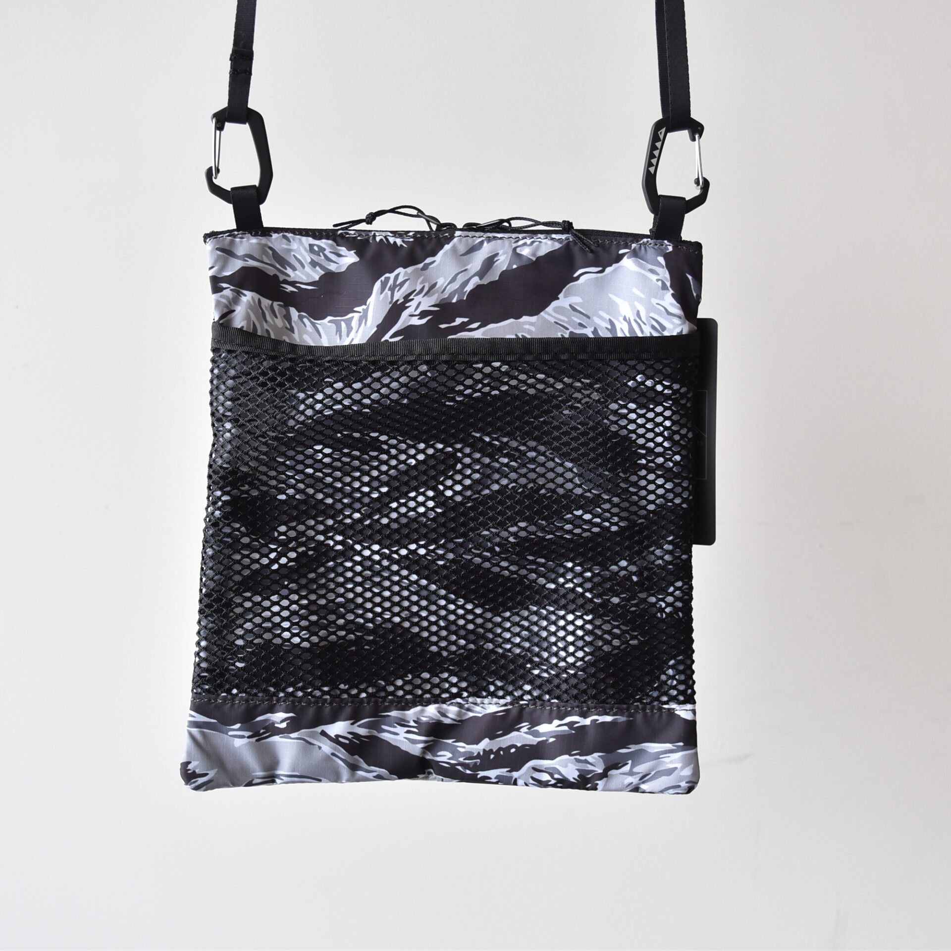 カモ柄を組み合わせたデザインが特徴的な軽量サコッシュ。