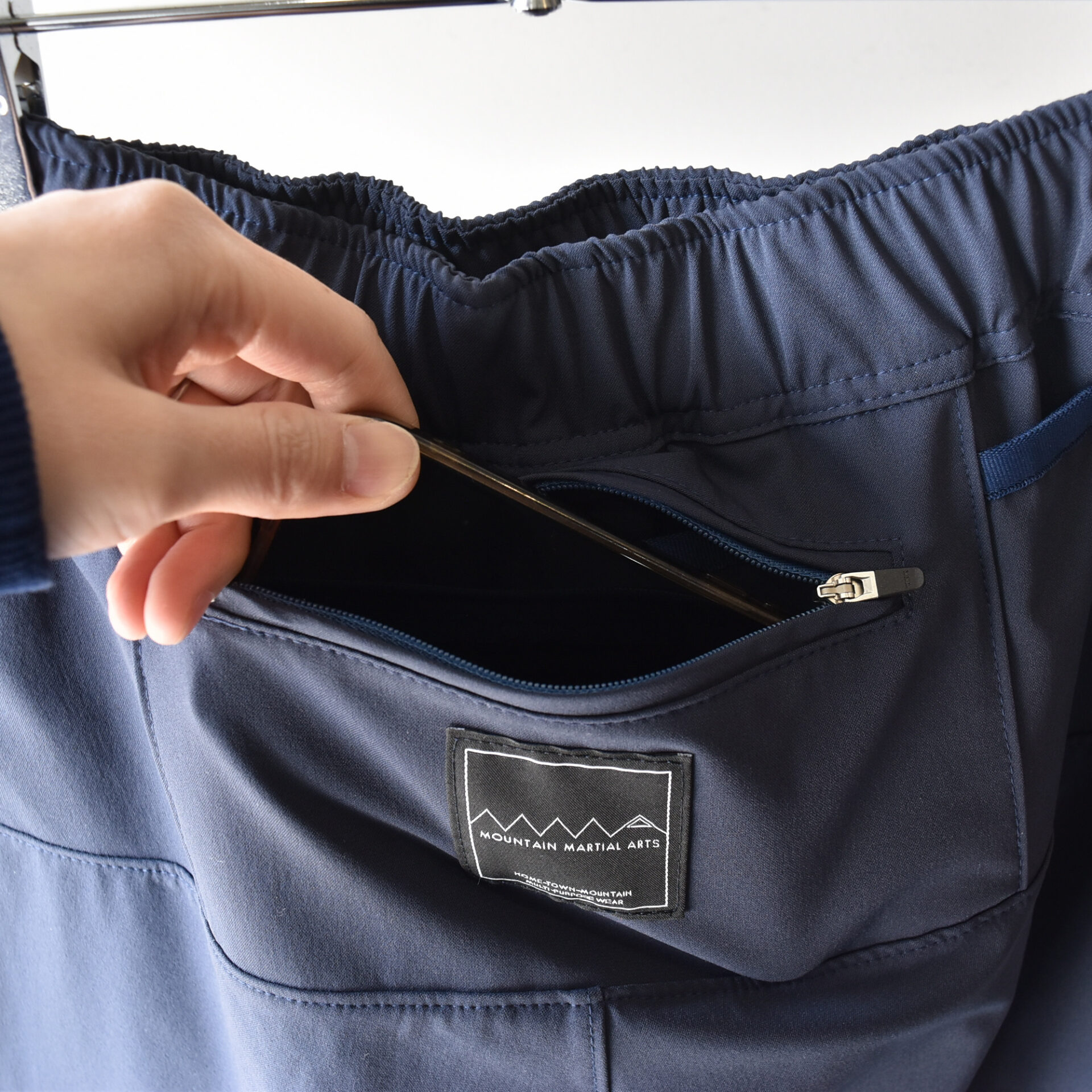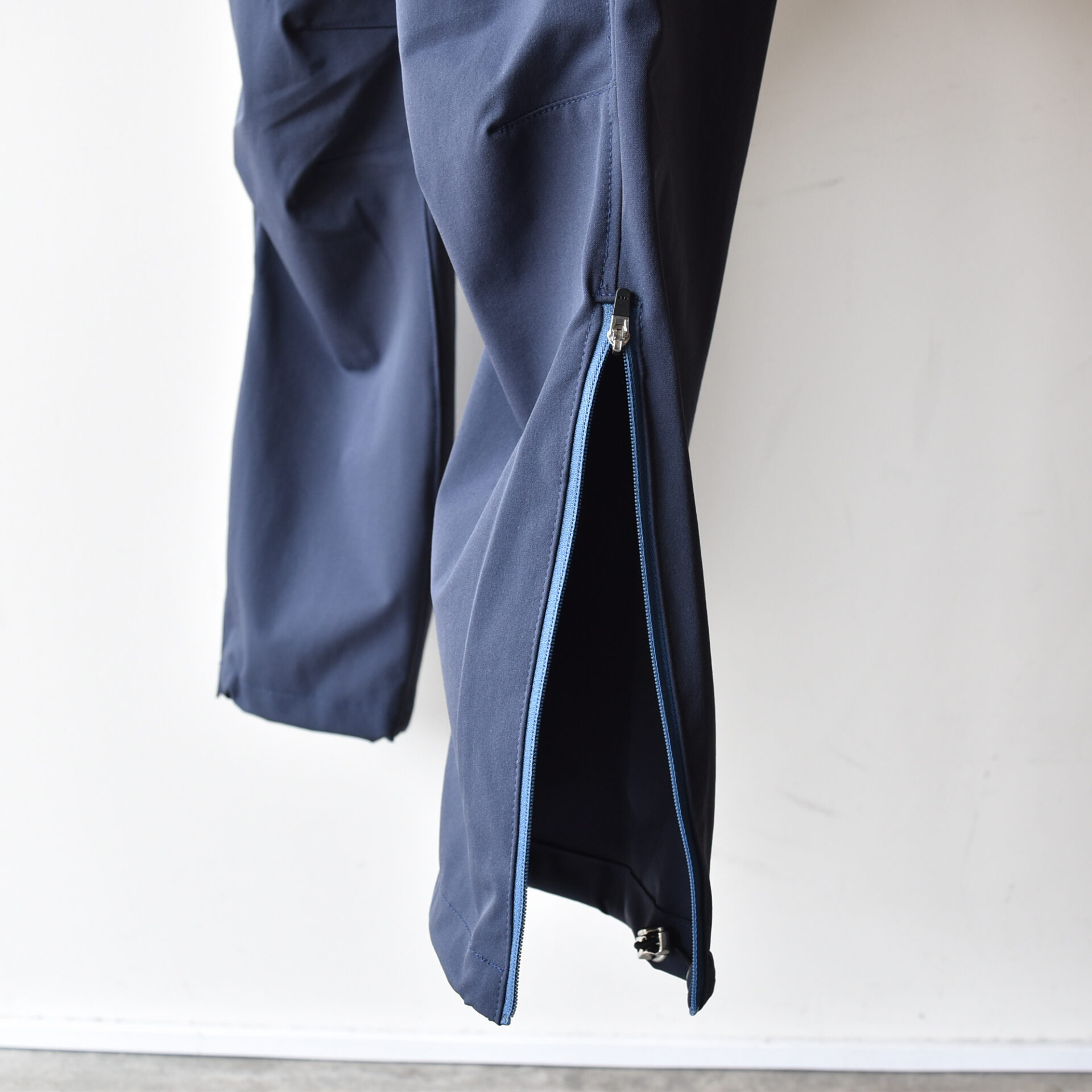 ゆとりのあるシルエットと裾のファスナーで、オーバーパンツとしても使用可能。
