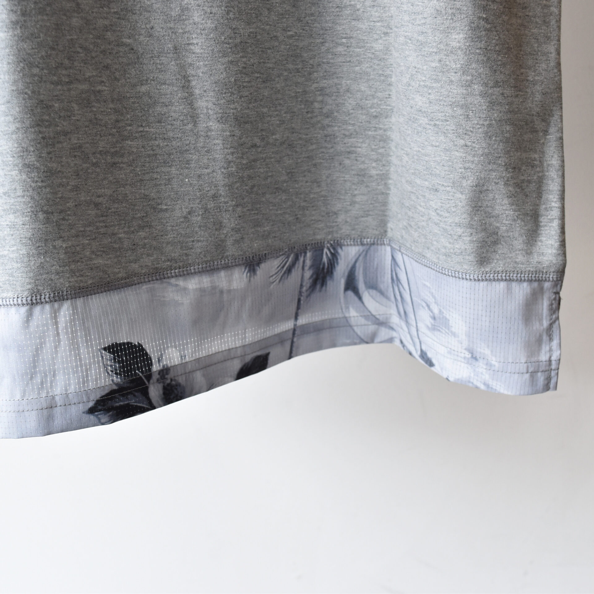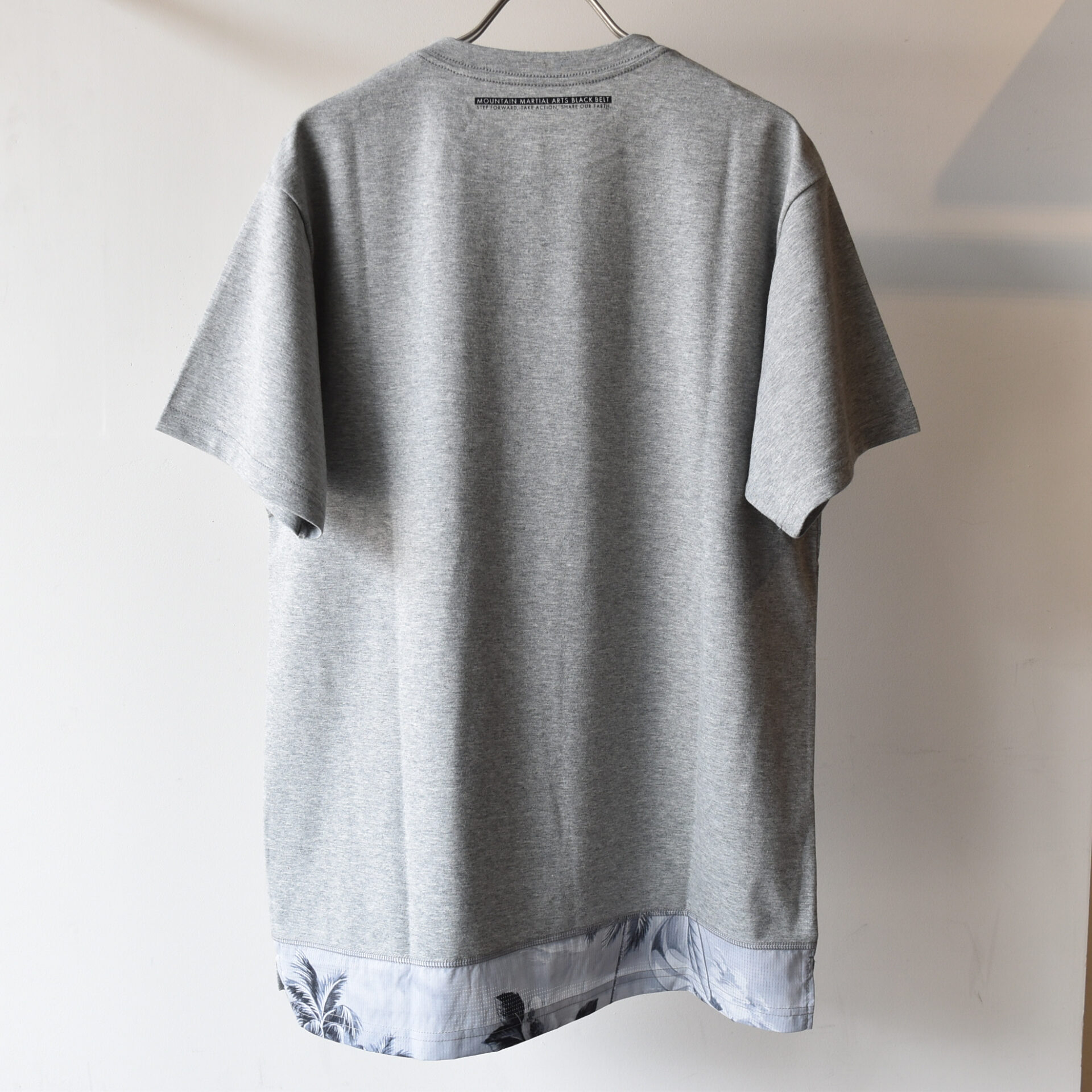 背面下部は MMA オリジナルプリント生地の残布をアトランダムに切り替えて使用。