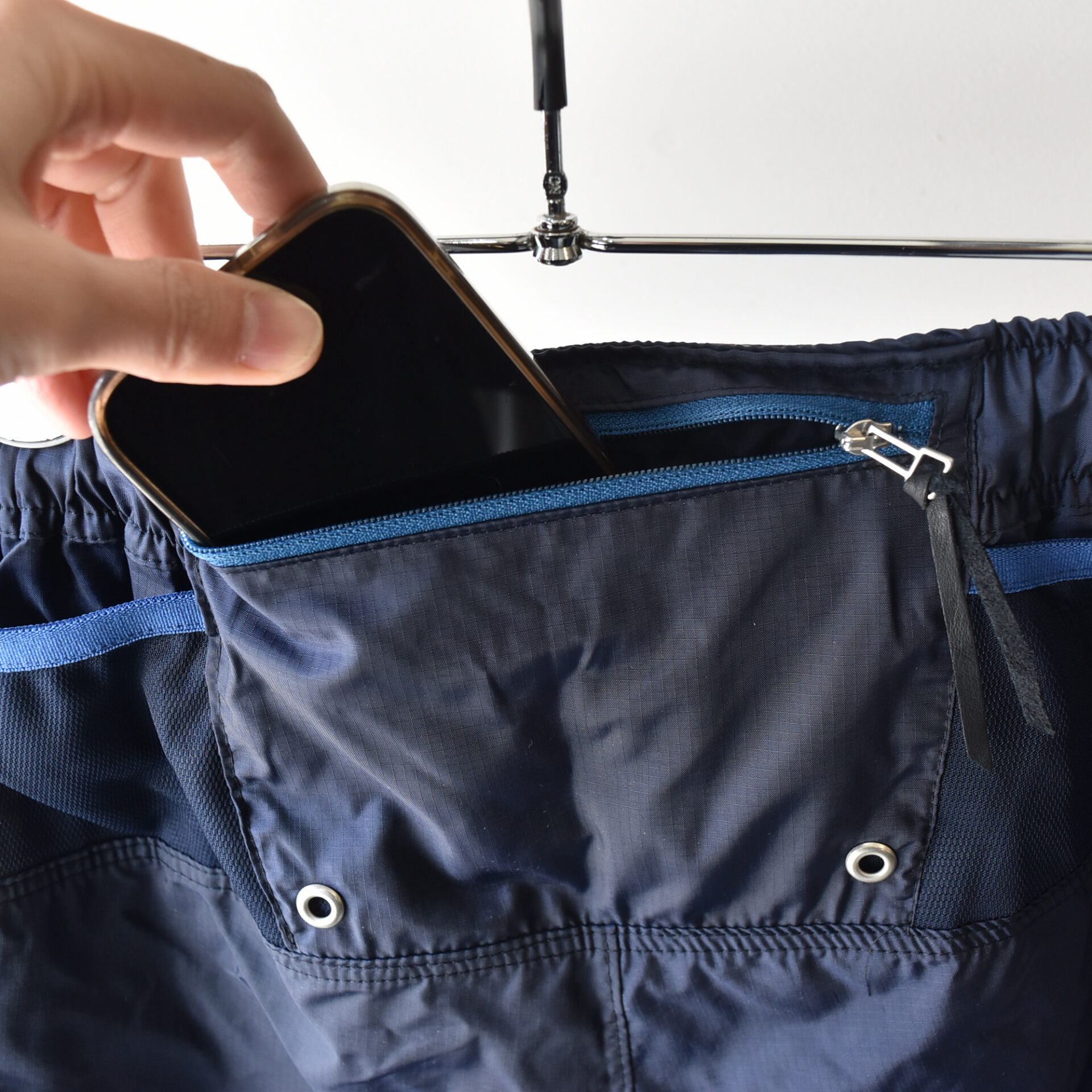背面腰部にはスマートフォンを収納できるセンターポケット。