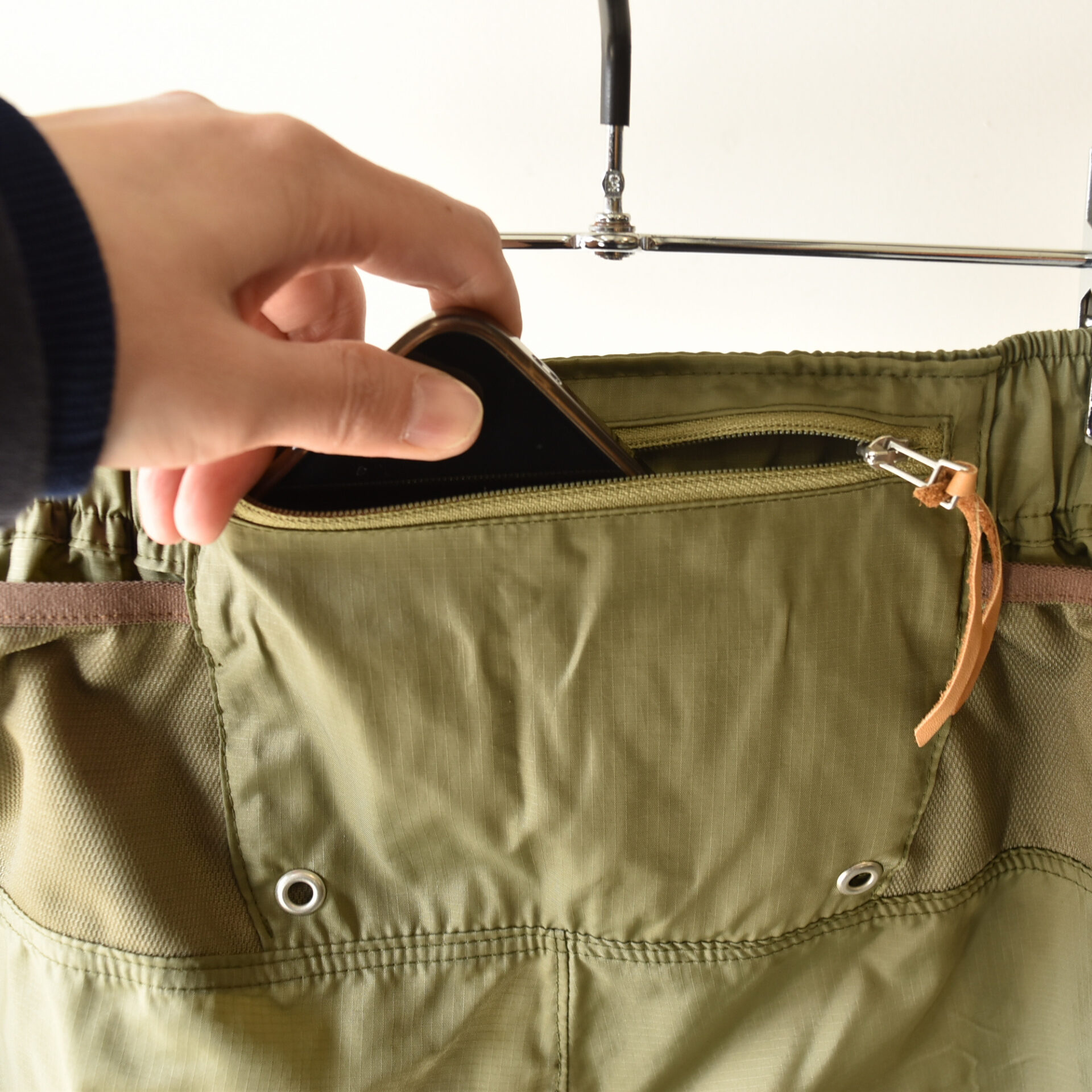 背面腰部にはスマートフォンを収納できるセンターポケット。