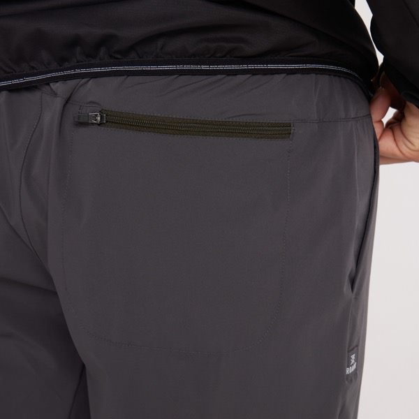 磁石式ハンドポケットとジッパー付きバックポケットを備え、夜道でも視認性を高めるリフレクタープリントのSAFE CAMPマークをあしらっています。
