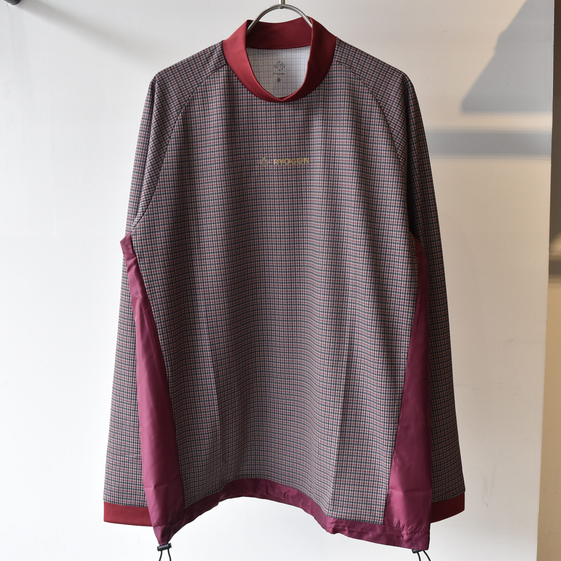 ランウェアとは一線を画す4種類の異素材をドッキングしたモックネックTEE。 COOLMAX®EcoModeを使用した吸水速乾素材に今期RYOGENの新柄ガンクラブチェックを昇華プリント。 裾はドローコード仕様により、様々なシルエットを楽しむことができます。