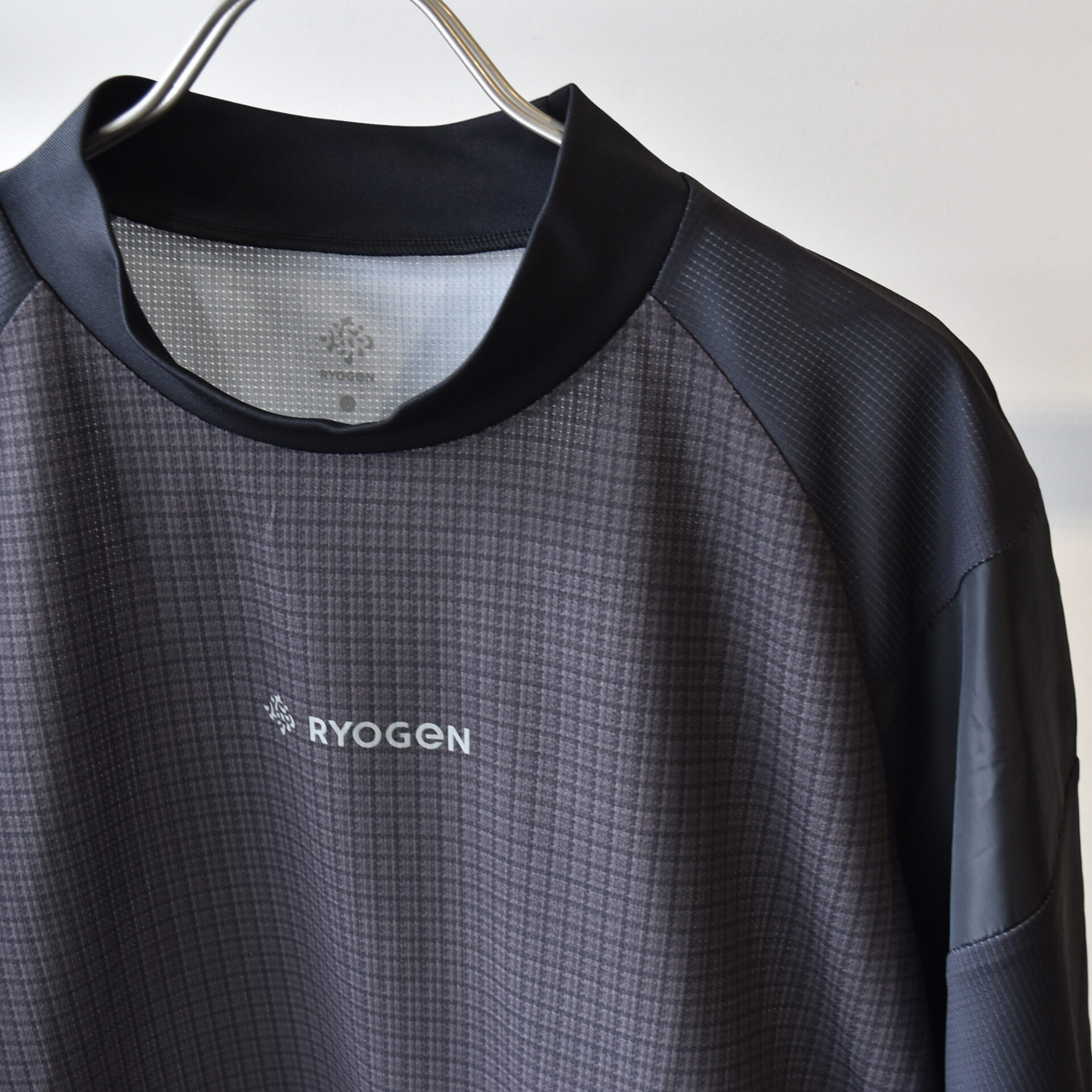 メインファブリックにはCOOLMAX® EcoModeを使用した吸水速乾素材に今季のRYOGENを象徴とする”ガンクラブチェック柄”を昇華プリント。