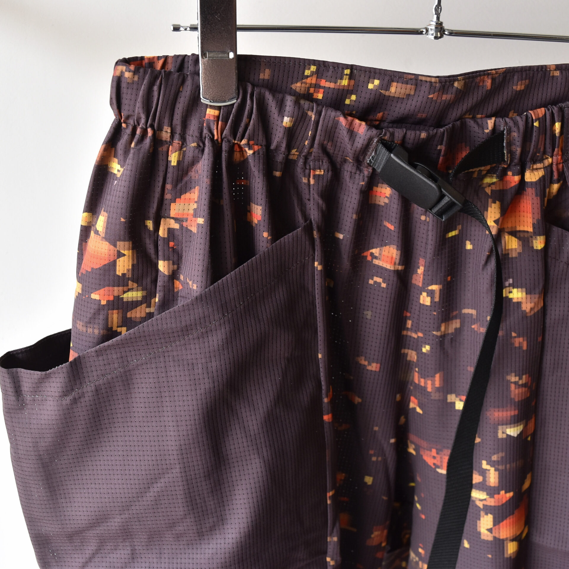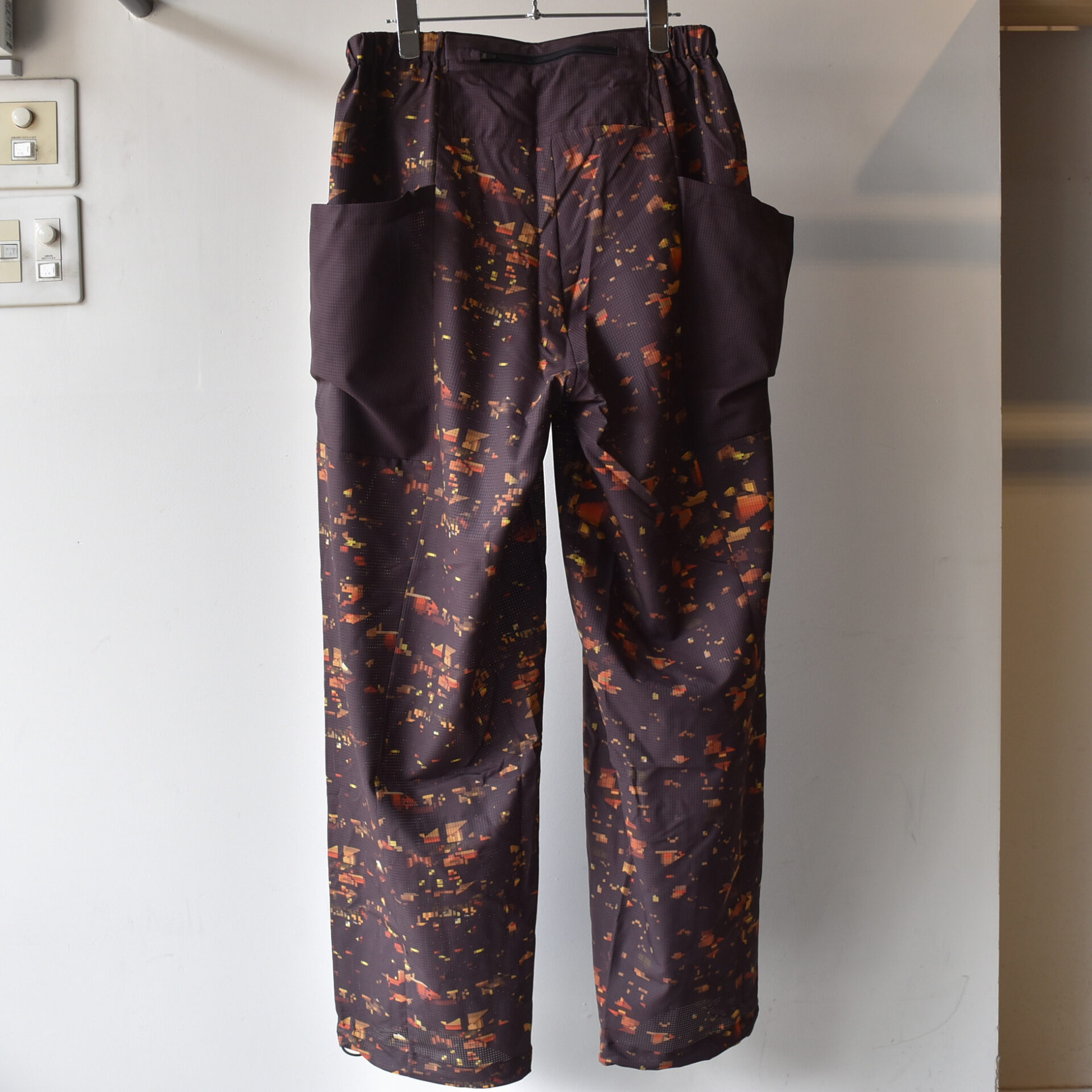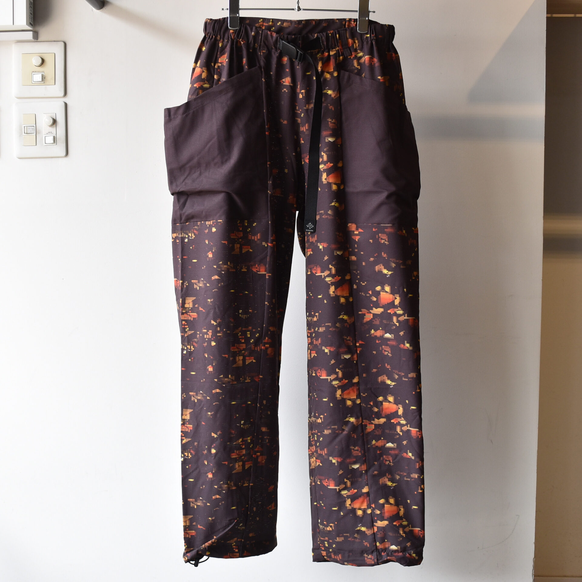 ブランドの世界観を一新する、ストリート感溢れるグラフィック〈NIGHT CAMO〉を全面に昇華プリントした軽量ワイドパンツ。
