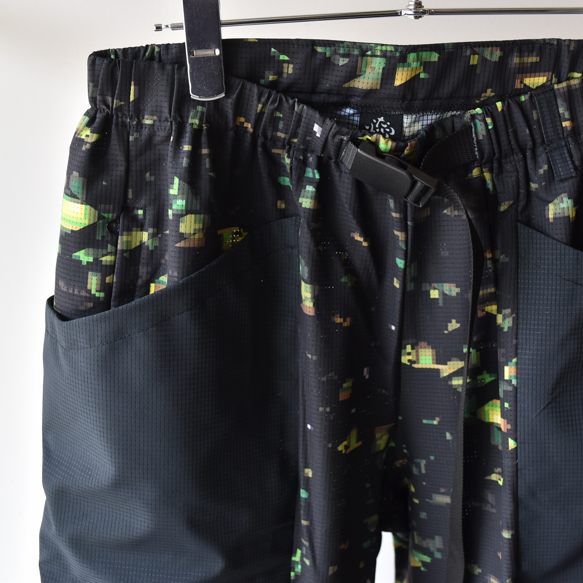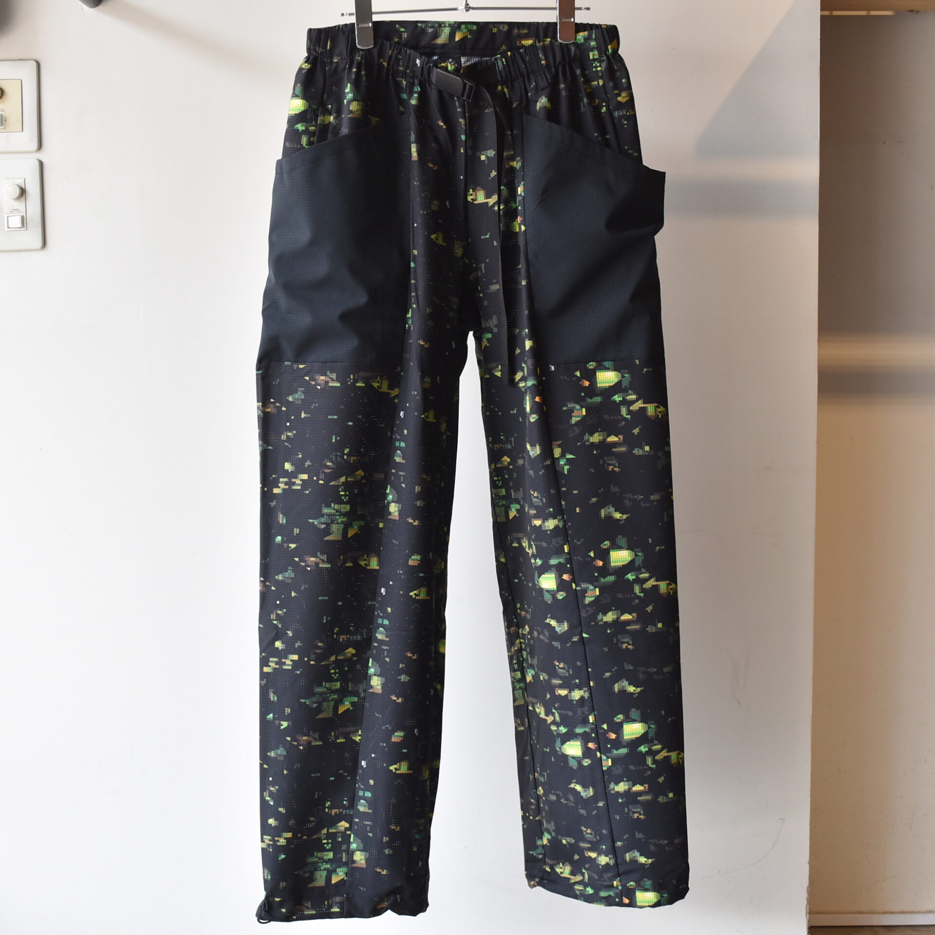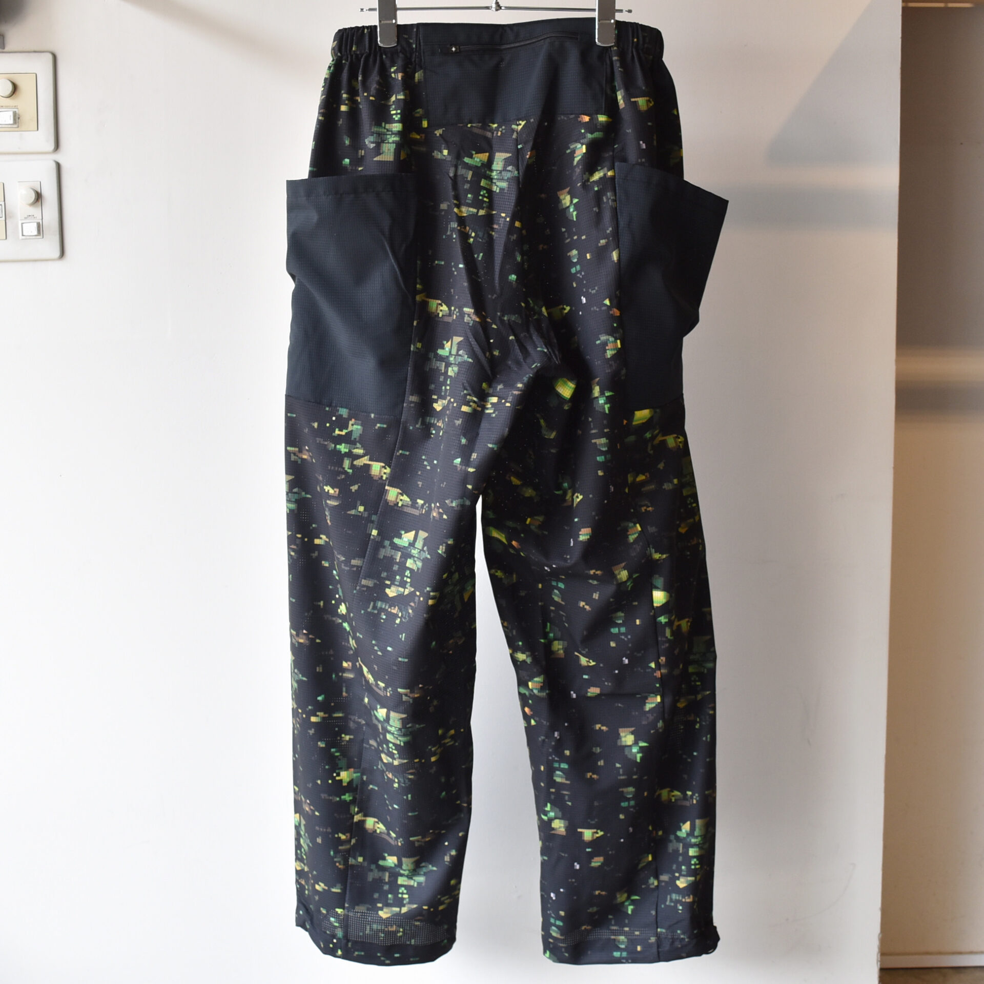 ブランドの世界観を一新する、ストリート感溢れるグラフィック〈NIGHT CAMO〉を全面に昇華プリントした軽量ワイドパンツ。