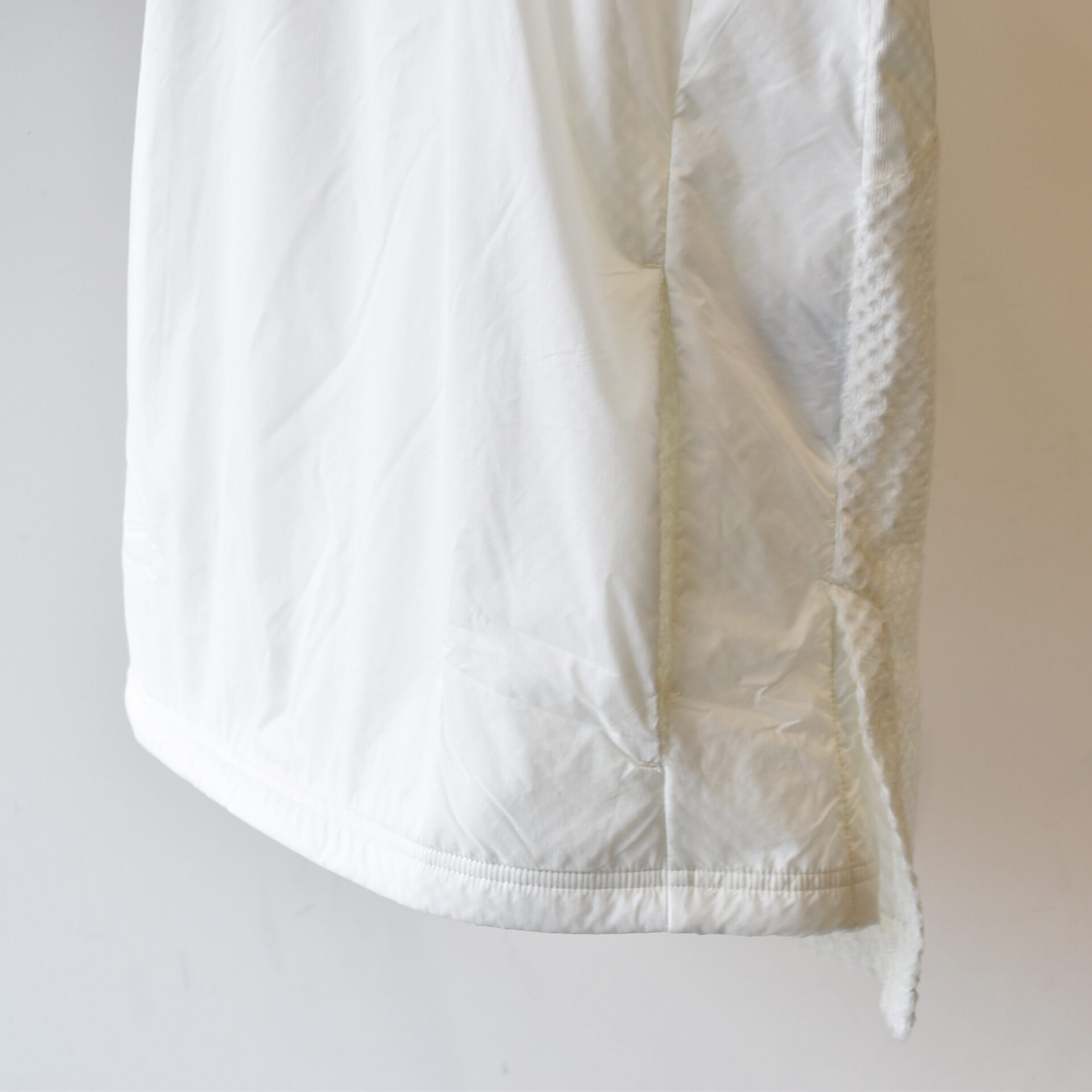 アクティブインサレーションとしての代表格”Octa”を採用したベストの前身頃にのみ、20デニールの超軽量ナイロン高密度タフタ生地を貼り合わせることで、抜群の防風性能を実現。