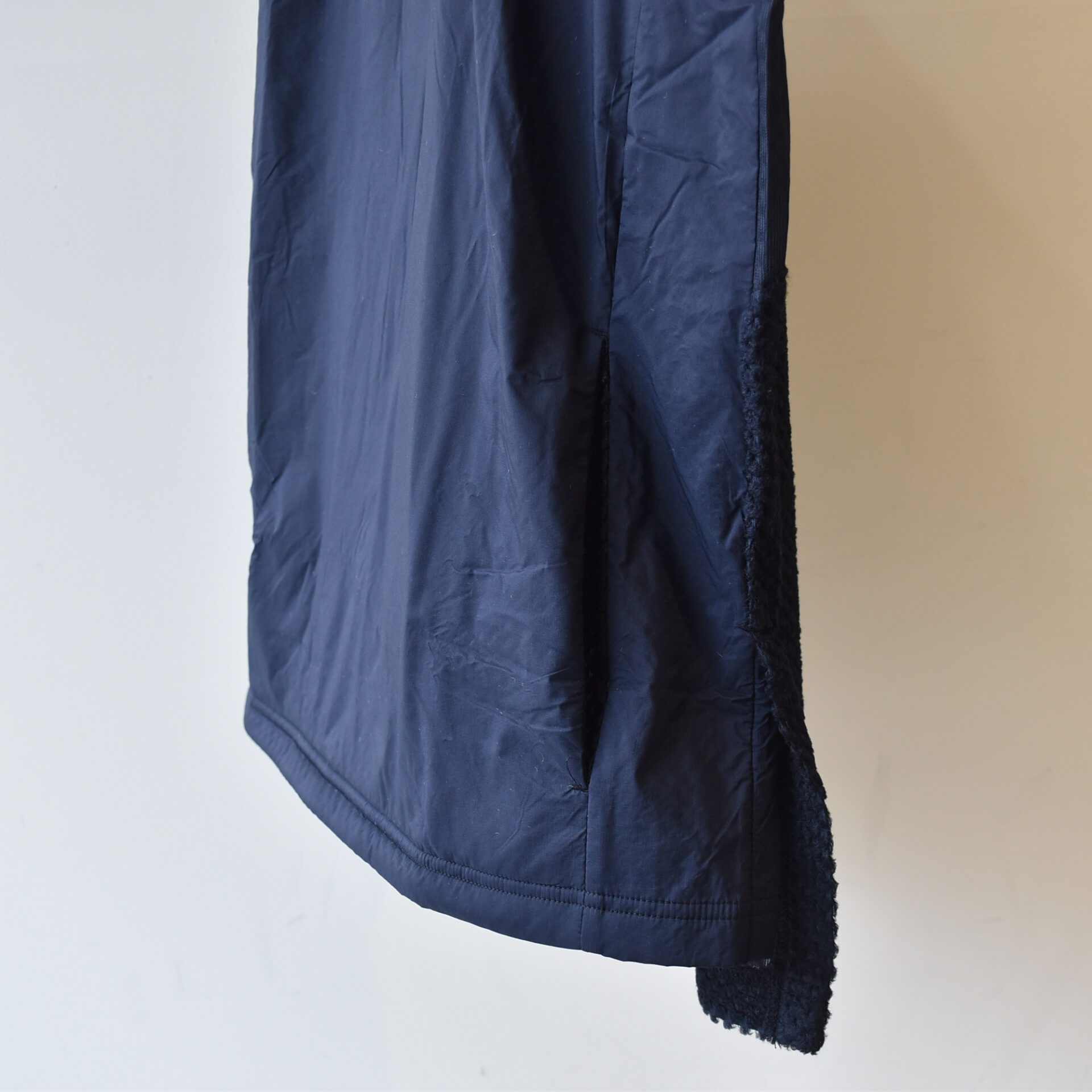アクティブインサレーションとしての代表格”Octa”を採用したベストの前身頃にのみ、20デニールの超軽量ナイロン高密度タフタ生地を貼り合わせることで、抜群の防風性能を実現。