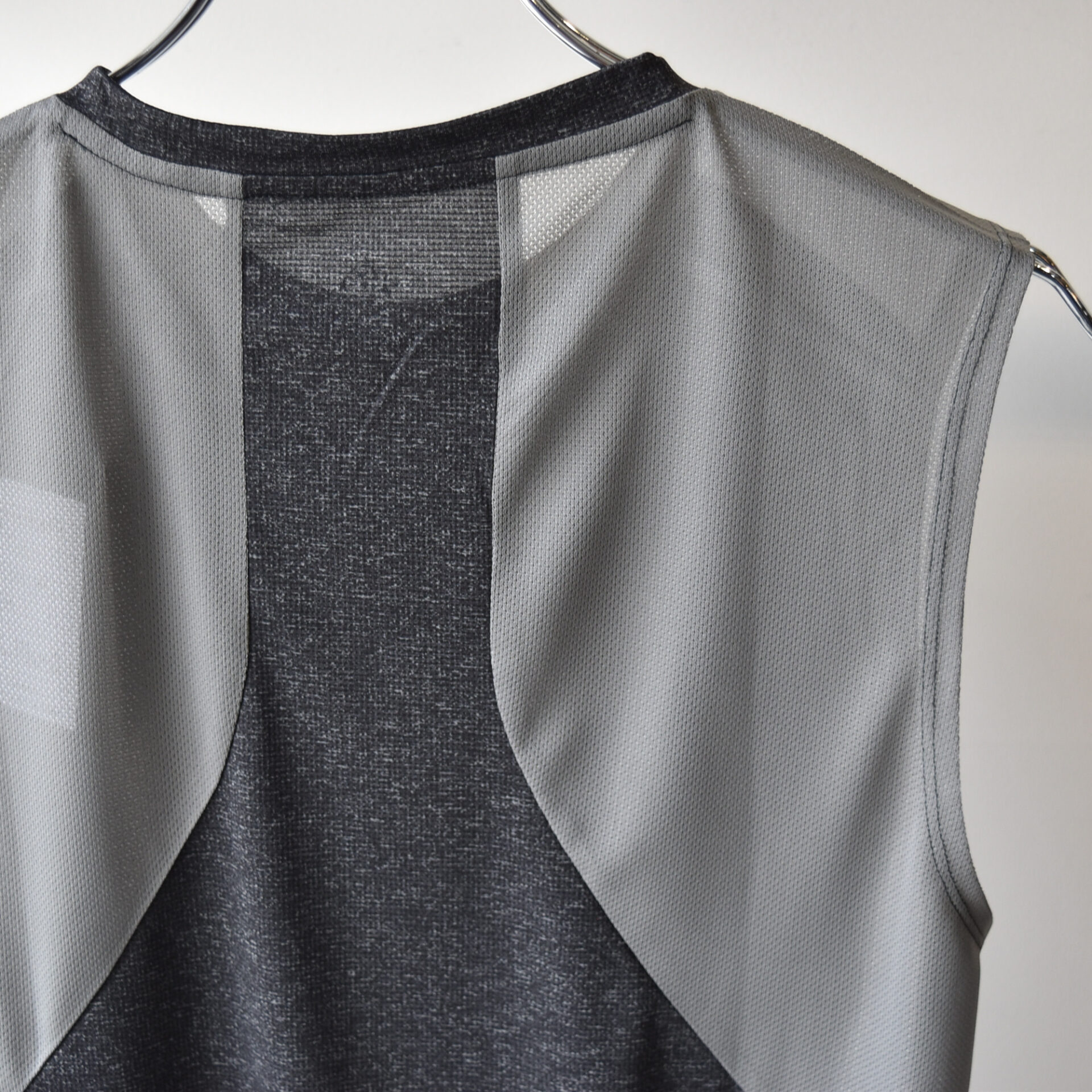 肩甲骨から背面にかけては、汗が滞留しやすい部分をメッシュで切り替え、通気性を最適化。
