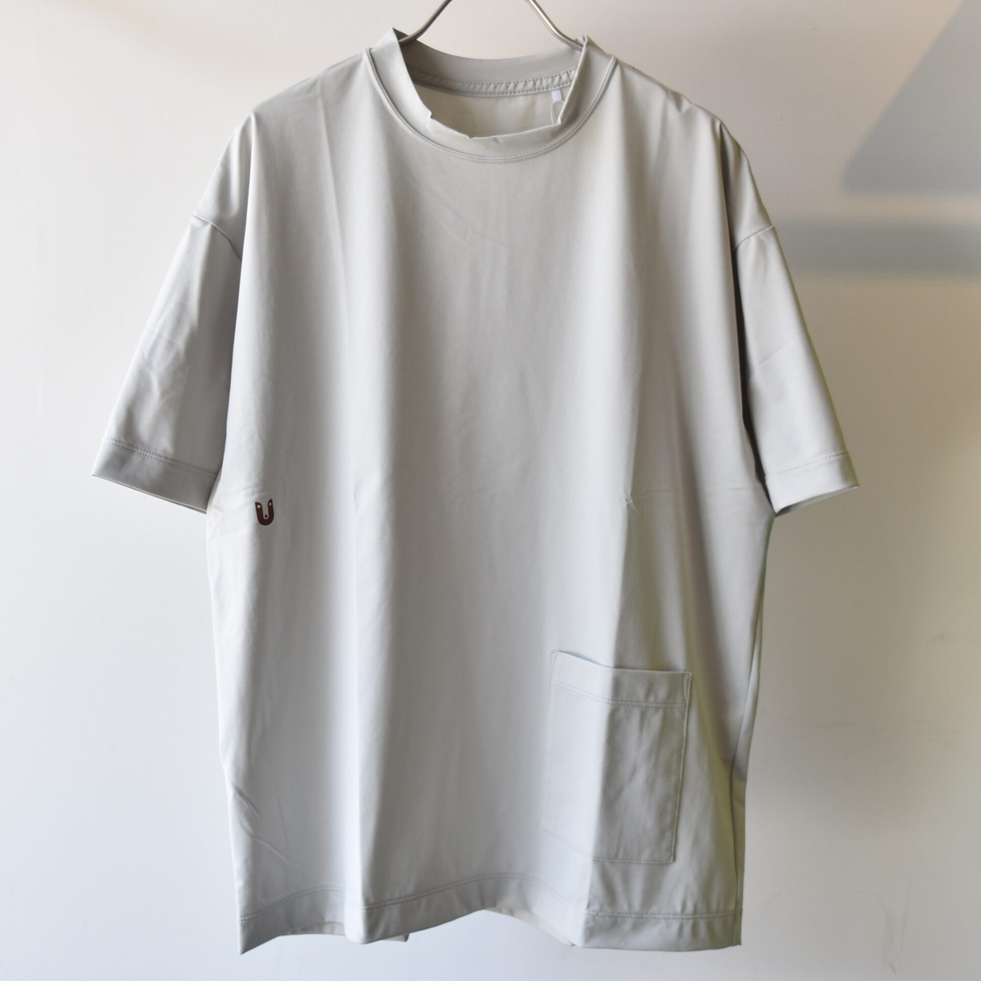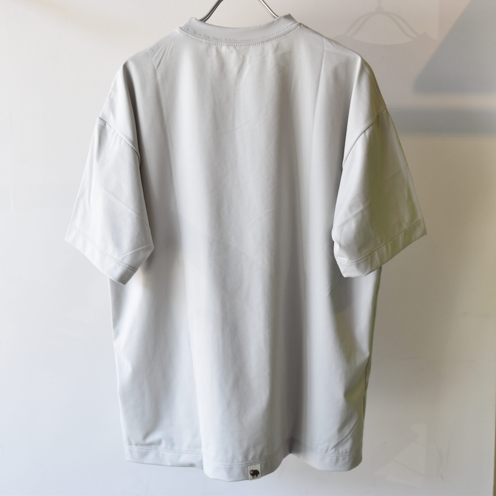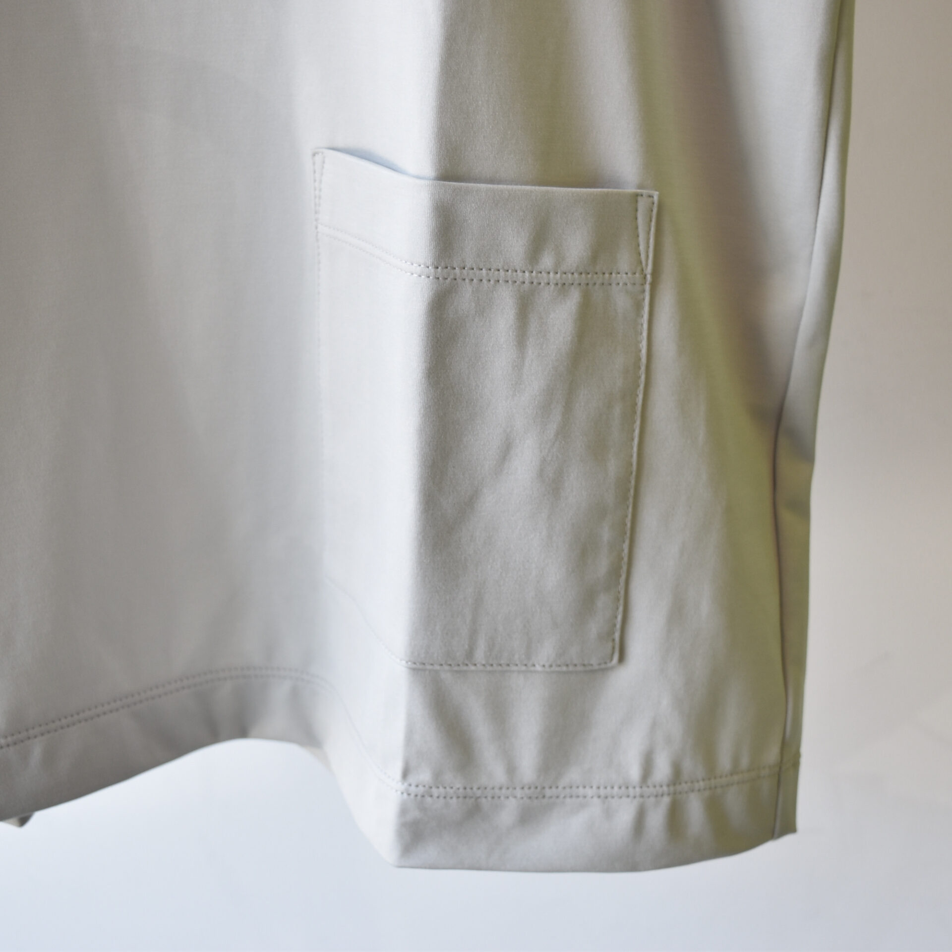決して細みではなく、しっかりとゆとりがあります。 街でのどんなシーンとも馴染みが良く、一方でバランスの良い分量感でランニングザックとの相性も悪くありません。 生地は軽さもありストレッチ性もある吸水速乾素材ですが、敢えてやや厚みのある素材をチョイスしました。 その風合いからスポーツウェアらしい匂いが極力抑えられていますが、しっかりとアクティビティに使用できる機能性を発揮します。 タッチは上品なコットンTシャツに近しいポリエステル素材です。