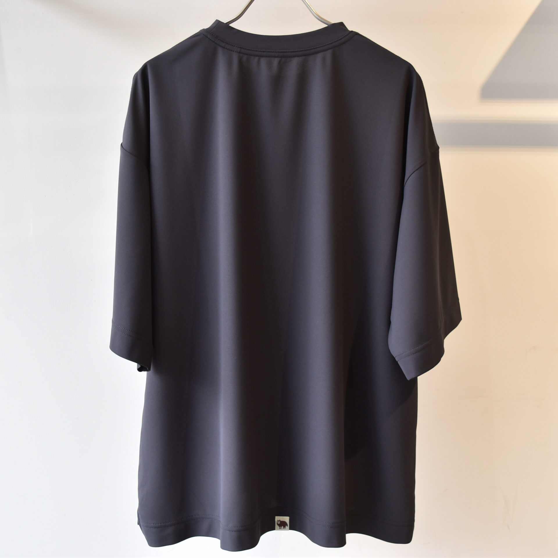 スムース素材によるビッグシルエットTシャツです。 デザインと素材が生み出す風をまとう感覚。そんな着心地のTシャツです。 身体にフィットさせるのではなく、あえて身体と服の間に隙間を作る、そのデザインと素材の持つドライな風合い、軽さによって身体の周りを風がかけぬける感覚を楽しめます。