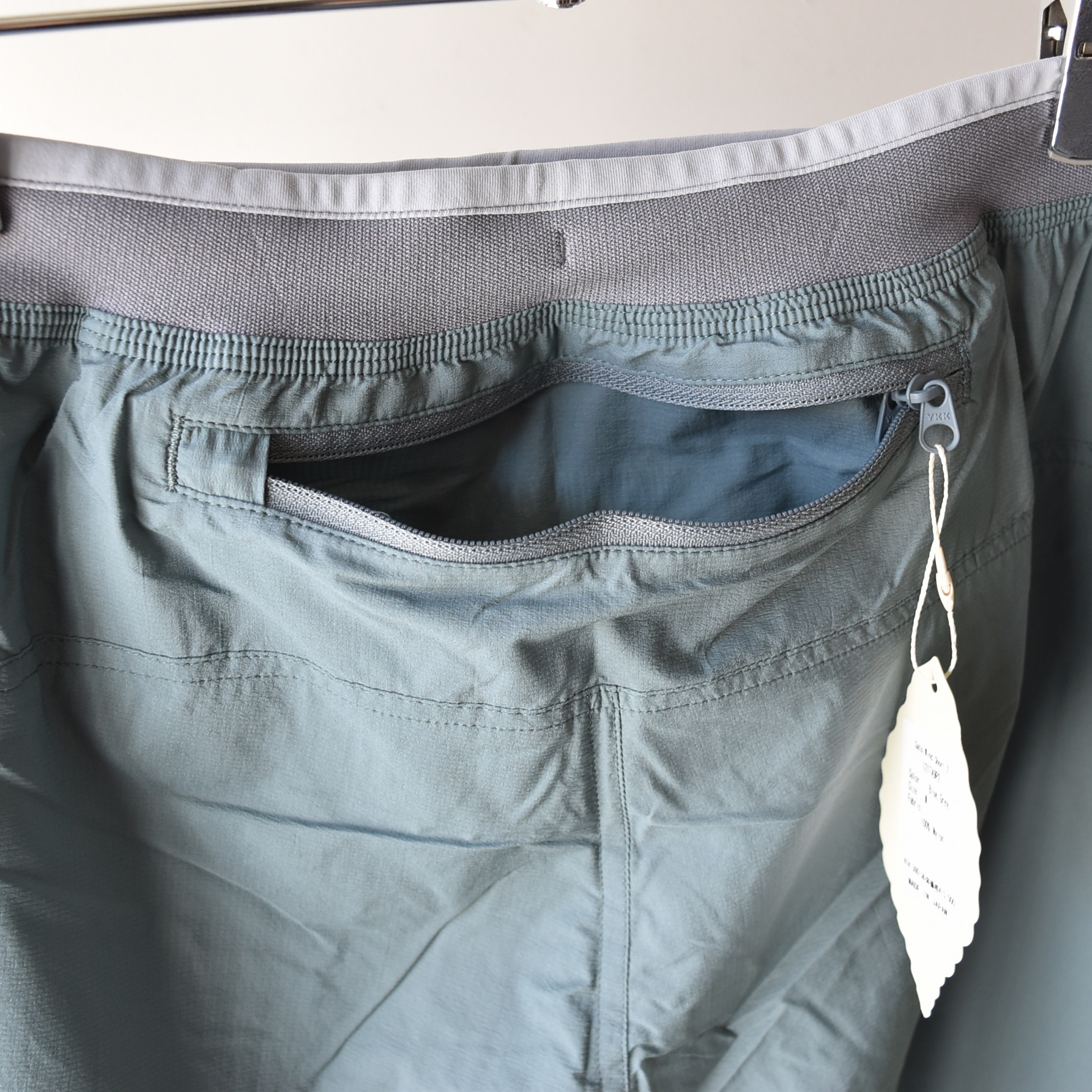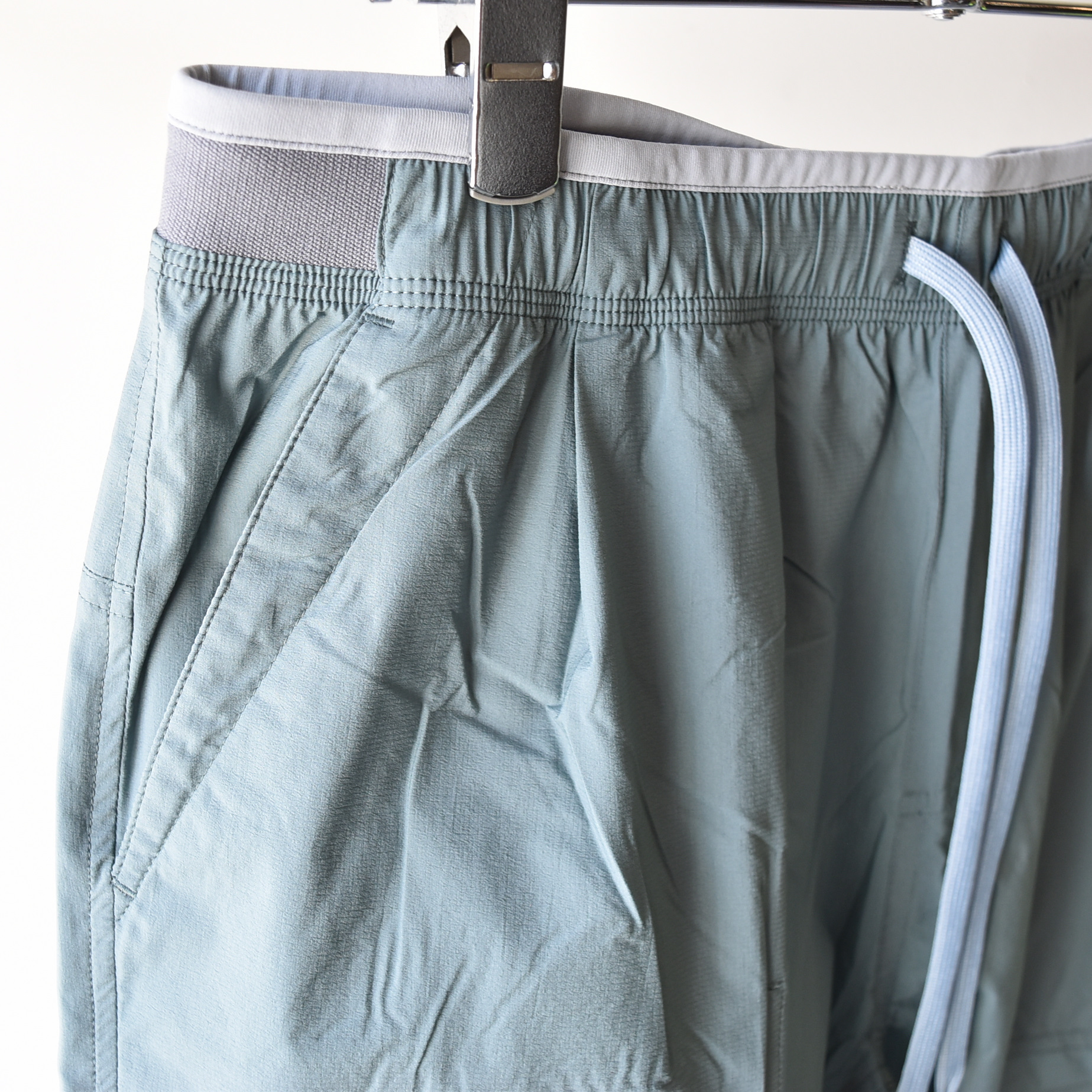 風のマネジメント、軽量性、速乾性を高いバランスで兼ね備える非常に機能性の高いウィンドシェル素材、その素材を使って、優しいフォルムの軽量ショーツが出来上がりました。