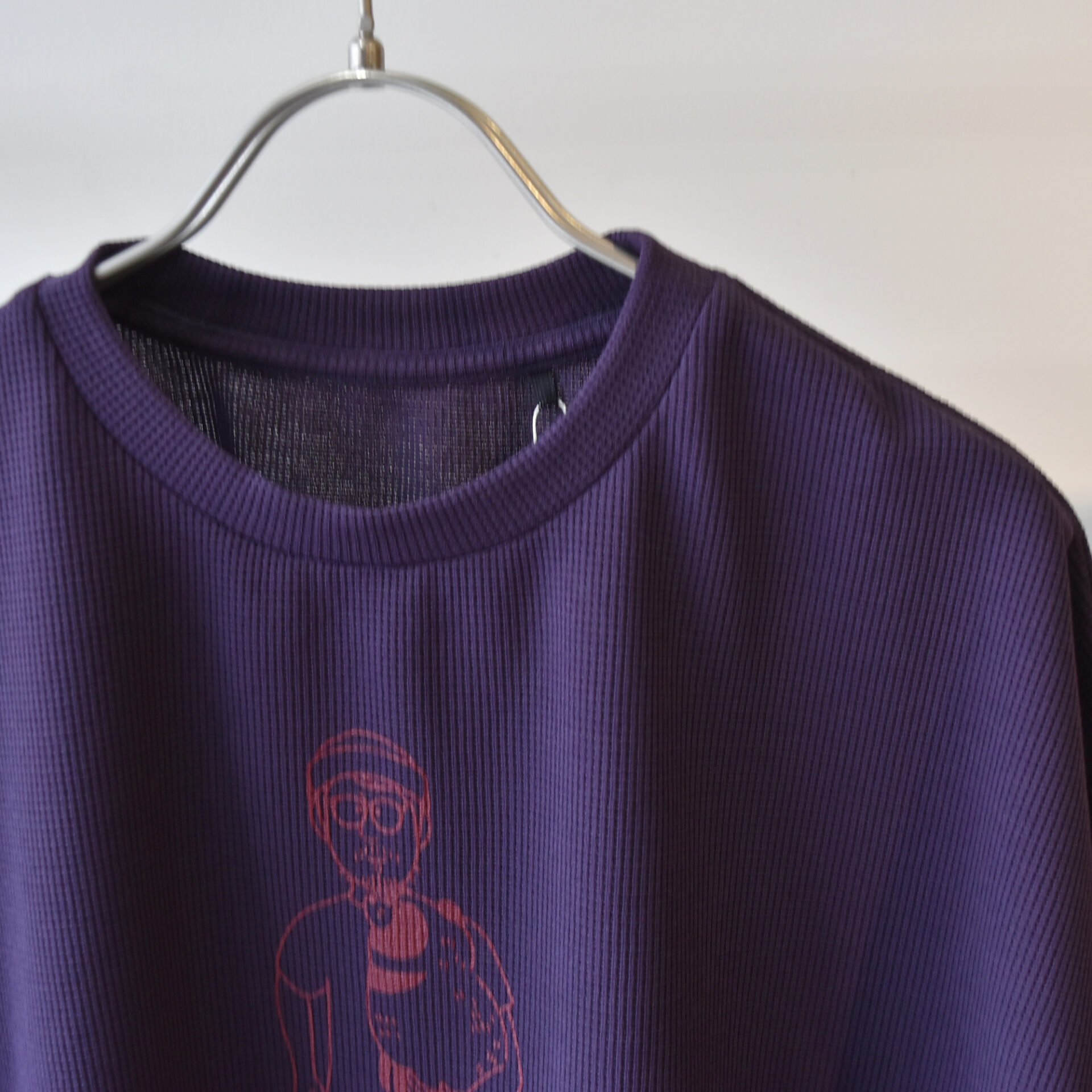 デザインと素材が生み出す風をまとう感覚。そんな着心地のTシャツです。身体にフィットさせるのではなく、あえて身体と服の間に隙間を作る、そのデザインと素材の持つドライな風合い、軽さによって身体の周りを風がかけぬける感覚を楽しめます。パフォーマンスを追求するというよりランニングを感覚的に楽しむ、そんな風に着ていただけたらと思っています。